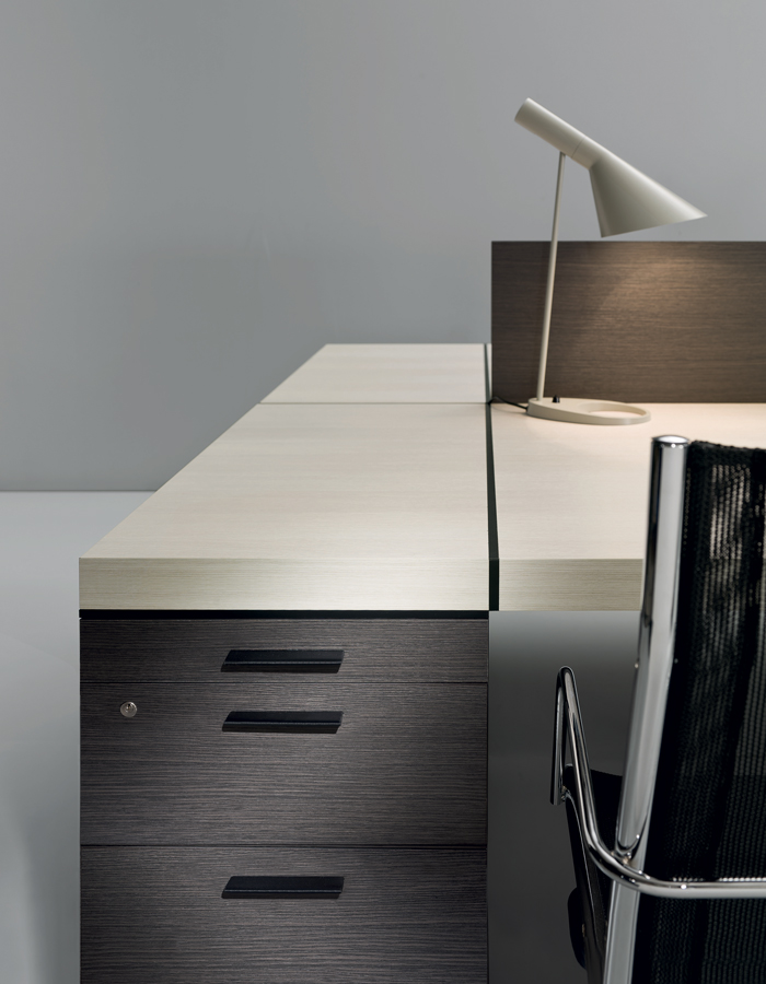 В линейке Blade Маттео Нунциати предлагает комплексную систему офисной мебели с простыми геометрическими линиями. Толщина и объем элементов, образующих столешницы столов и шкафов, подчеркивают качество и прочность конструкции каждого изделия. Отличительным знаком является полоска седельной кожи, отличительный материал компании, которая, подобно лезвию, разделяет и прерывает поверхность, завораживая зрителя: как в произведениях голландского неопластицизма начала 1900-х годов, вдохновивших коллекцию на поиск пропорций и индивидуальности, которые являются узнаваемым признаком стиля. товарный знак.