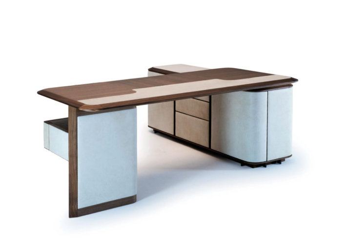 Основная конструкция : Круглая еловая фанера. Декоративные рамы и основание : Облицованы черным деревом; по запросу также доступны в отделке кожей или американским орехом. Выдвижные ящики с боковым открыванием. Заканчивать : Выдвижные ящики и боковые части, обитые высококачественной кожей, доступны в различных цветах.