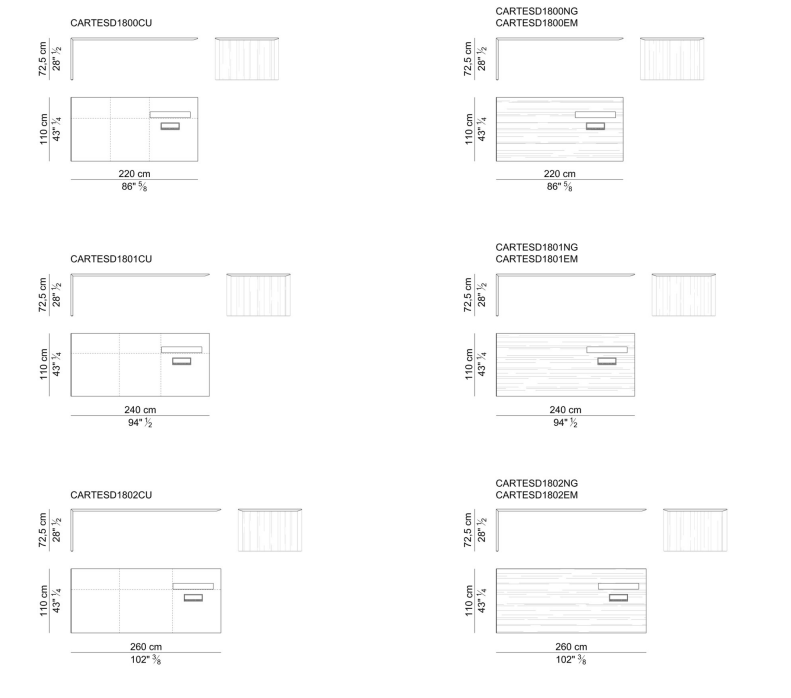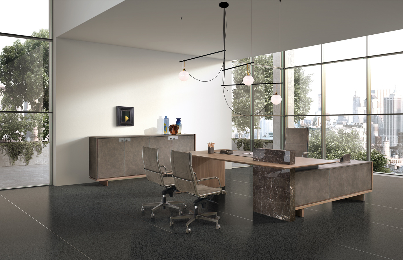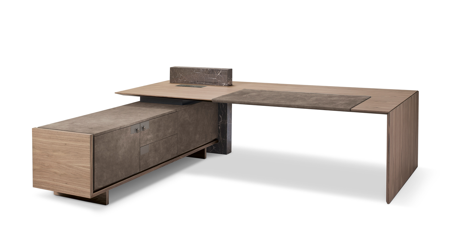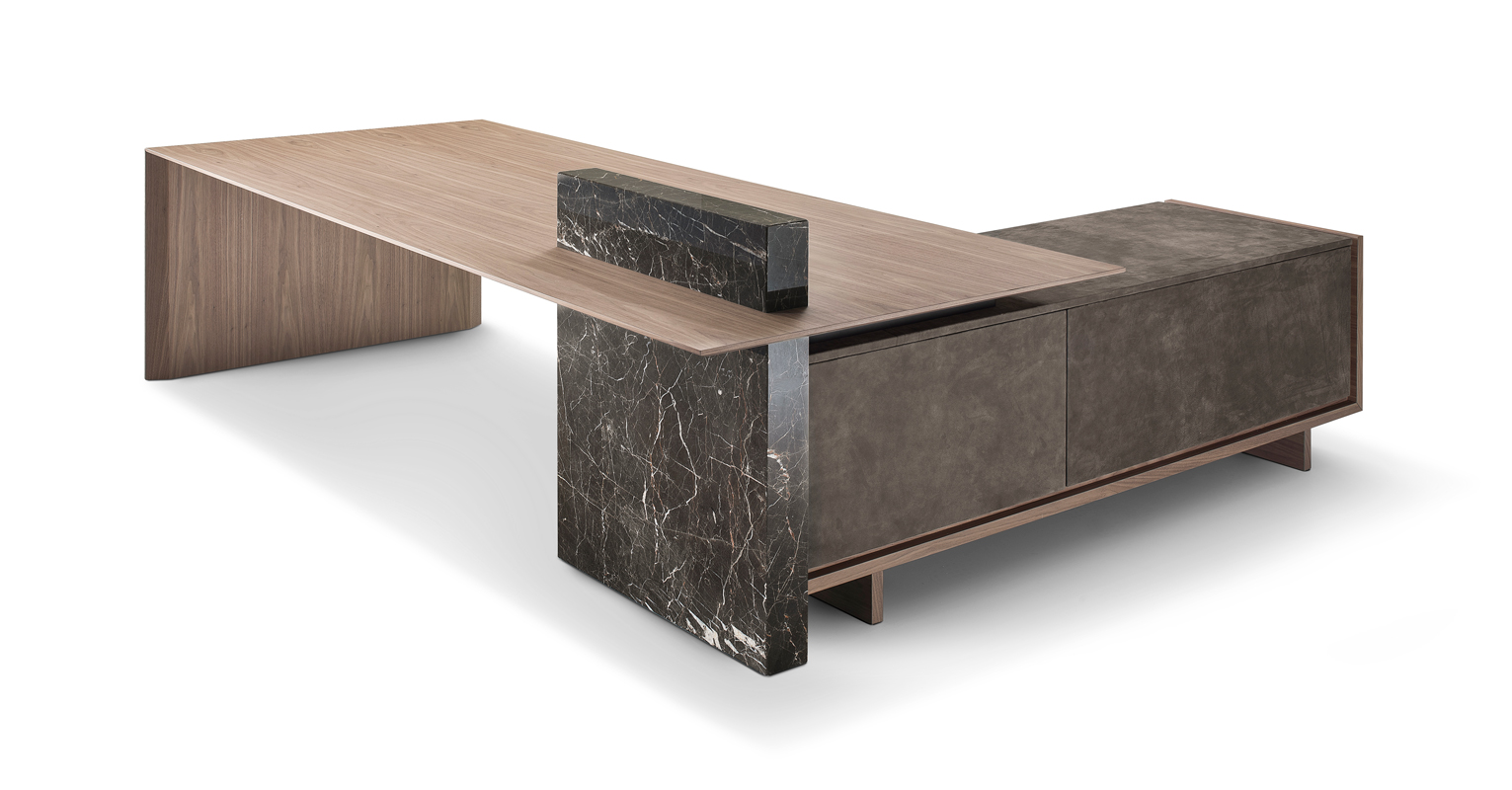 “Используя математический язык, мы могли бы сказать, что происхождение Картезиано определяется двумя пересекающимися вершинами”. Так архитектор Ферруччо Лавиани рассказывает о том, как родился Картезиано. По сути, исполнительная система состоит из столешниц, которые, пересекаясь друг с другом, образуют столешницу и основание этого стола чистыми, но решительными линиями, подчеркнутыми отделкой, используемой в различных комбинациях.