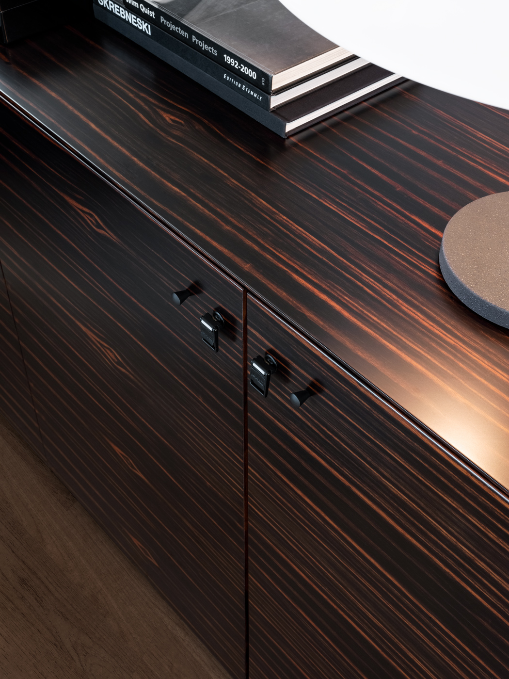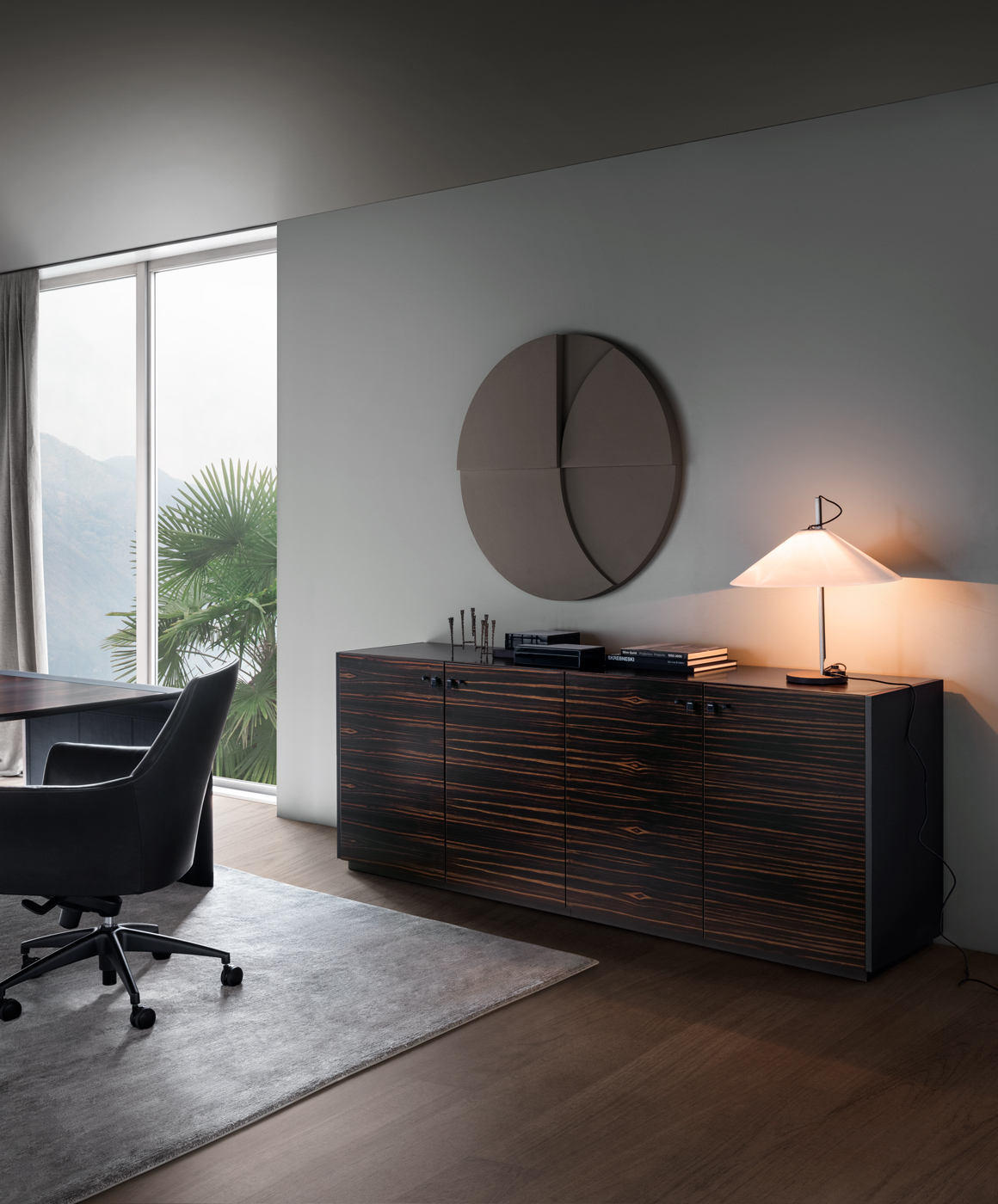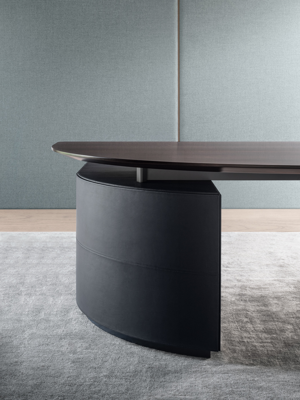 SIENA — письменный стол для руководителей, отличающийся одновременно строгим и утонченным дизайном, благодаря столешнице, которая с одной стороны изгибается и становится конструкцией, а с другой поддерживается значительным объемом. В результате получается изделие, демонстрирующее игру геометрии, линий и пропорций, подчеркнутую наличием и превосходным качеством изготовления натуральных материалов, таких как дерево и седельная кожа, а также лакированной отделкой, которая для 4Mariani представляет собой неопубликованный стилистический язык, представленный Ludovica+Roberto Palomba. SIENA также присутствует в версии, предназначенной для дома/офиса.