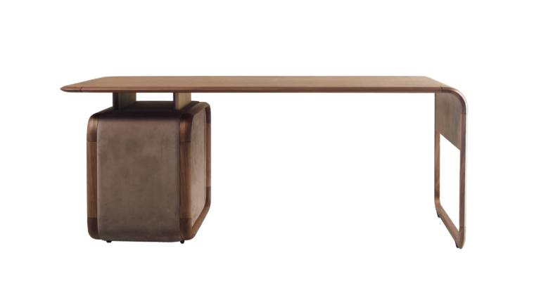 Основная конструкция : Круглая еловая фанера, облицованная американским орехом. Декоративные рамки столешницы, выдвижных ящиков и основания : Массив американского ореха. Заканчивать : Выдвижные ящики и боковые части, обитые высококачественной кожей, доступны в различных цветах.