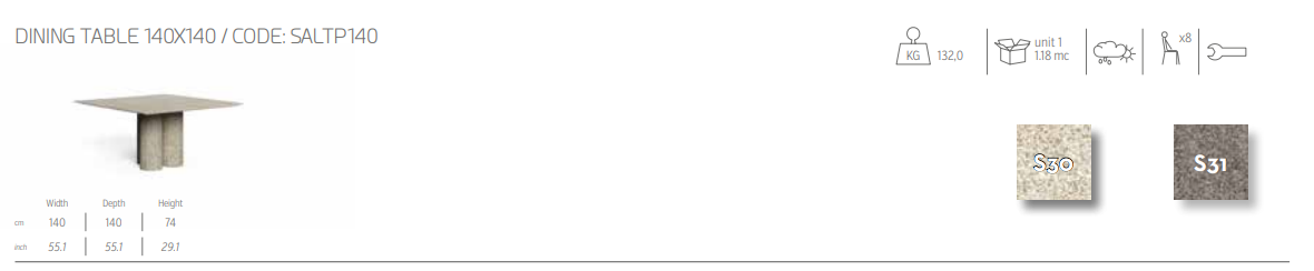 Обеденный стол Salinas привносит в интерьер изысканность, характерную для интерьера на открытом воздухе. Оригинальный дизайн поддерживающих его колонн подчеркивает текстуру бетона, напоминая о природном очаровании Салинаса, региона Ибица, который вдохновил на создание всей коллекции.