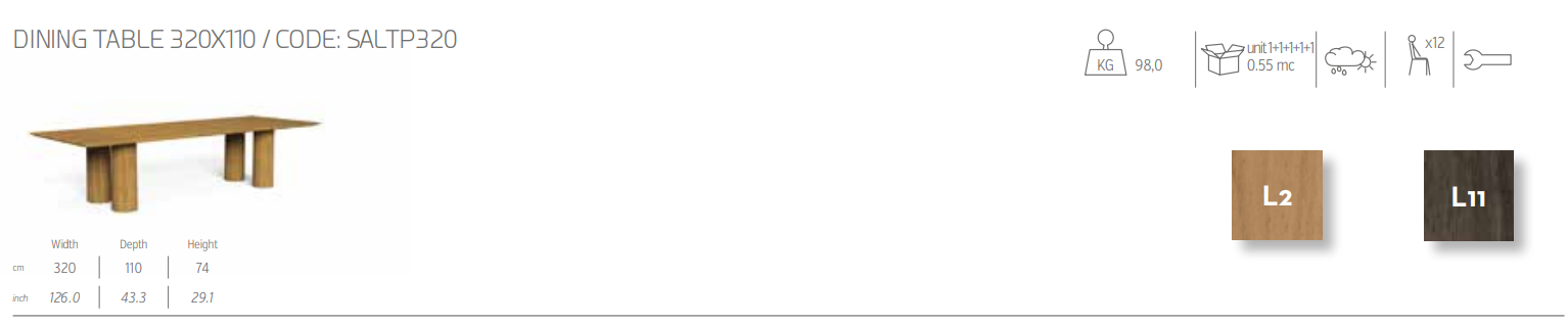 Обеденный стол из коллекции Salinas придает естественное очарование интерьеру на открытом воздухе благодаря оригинальному дизайну, который подчеркивает свойства дерева. Элегантный и изысканный стиль, подчеркнутый 4 классическими колоннами, которые его поддерживают, обеспечивает гармоничное сочетание мебели для внутреннего и наружного использования.
