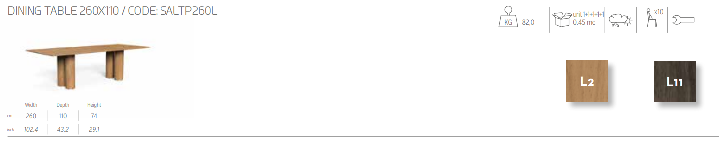 Обеденный стол размером 260×110 см из коллекции Salinas привносит естественное очарование в обстановку на открытом воздухе благодаря своему оригинальному дизайну, подчеркивающему свойства дерева. Элегантный и изысканный стиль, подчеркнутый 4 классическими колоннами, которые поддерживают его, предлагает решение, обеспечивающее преемственность между внутренним и внешним убранством.