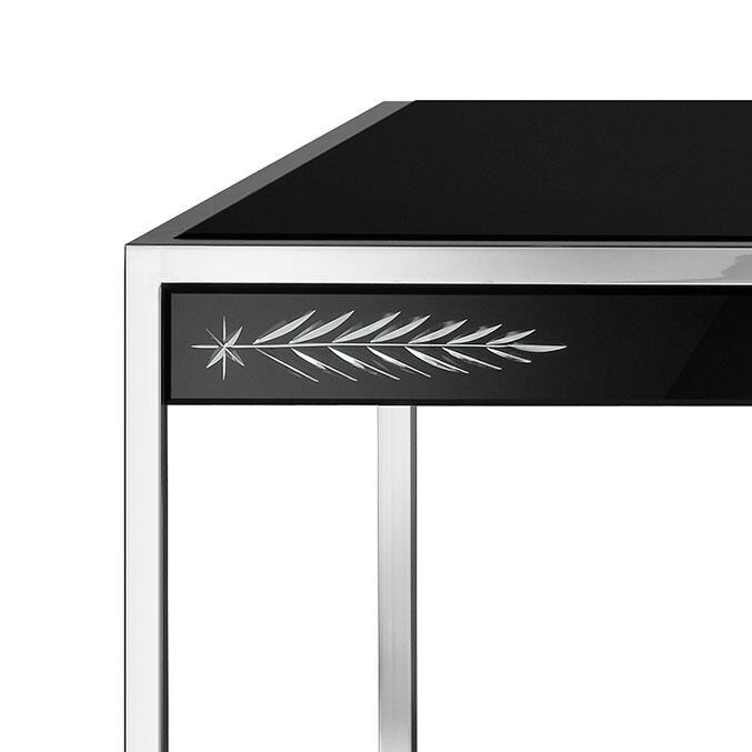 Конструкция из дерева, покрытого черным матовым лаком. Конструкция на четырех ножках из нержавеющей стали с блестящей отделкой.