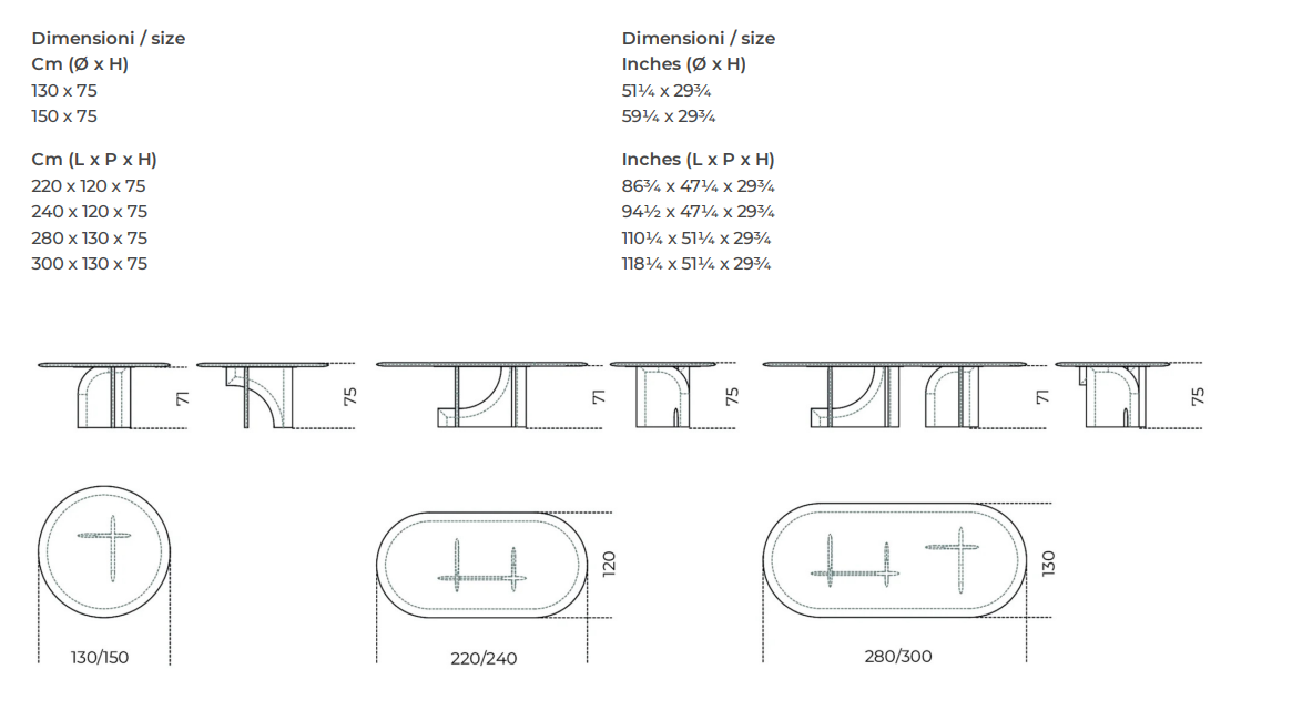 Стол изготовлен путем нанесения порошка из натурального камня с помощью техники ручного шпателя. Доступен в цветах «сожженный» и «кремовый». Поскольку это смесь измельченных натуральных камней, однородность цветовых оттенков не гарантируется.