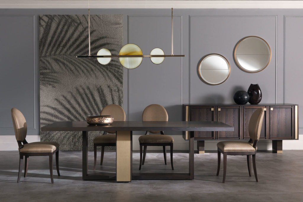 Обеденный стол Moderna RAY имеет шарнирную структуру металлического основания с бронзовой или хромированной отделкой. Ножка стола RAY вдохновлена самыми инновационными архитектурными конструкциями. Мраморная столешница доступна в двух вариантах: овальной и круглой.