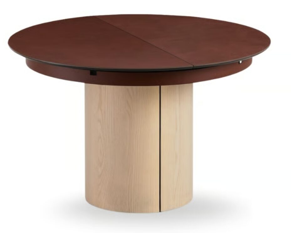 Выдвижной стол Sesamo с металлическим основанием и столешницей из дерева, керамики или стекла.