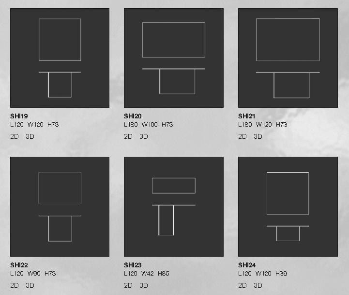 Высокие столики, низкие тумбочки и консоли из ламинированного и клееного стекла, отличающиеся особой переливчатой многоцветной отделкой; оттенки варьируются в зависимости от угла наклона источника света и точки обзора. Отраженные предметы приобретают волшебный и неземной вид. Основания высоких столов могут быть демонтированы и закреплены на столешнице с помощью металлических пластин, скрытых круглым декорированным покрытием.