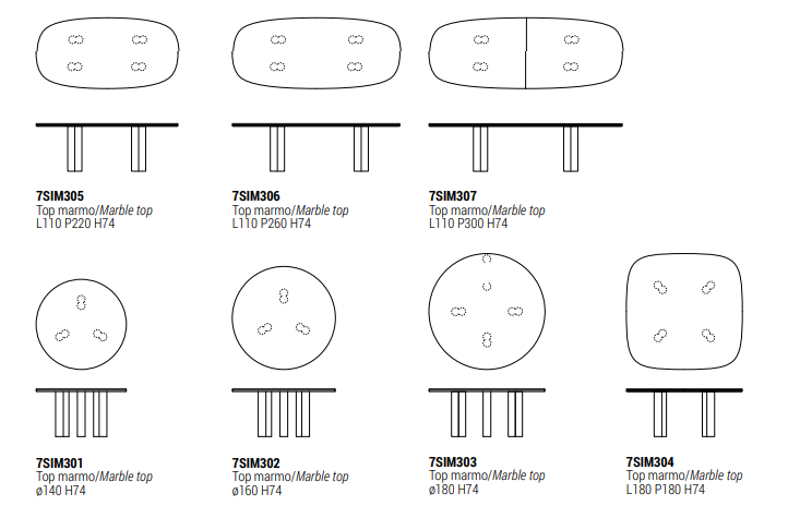 Стол Simmy Dining создан из натурального мрамора — материала, который веками ассоциируется с роскошью и респектабельностью. Фабрика Giulio Marelli предлагает 16 вариантов мраморных столешниц, от классического белого Carrara до глубоких оттенков Portoro или Calacatta Gold. Ножки стола выточены из цельного мраморного блока, что гарантирует не только визуальную гармонию, но и исключительную прочность.