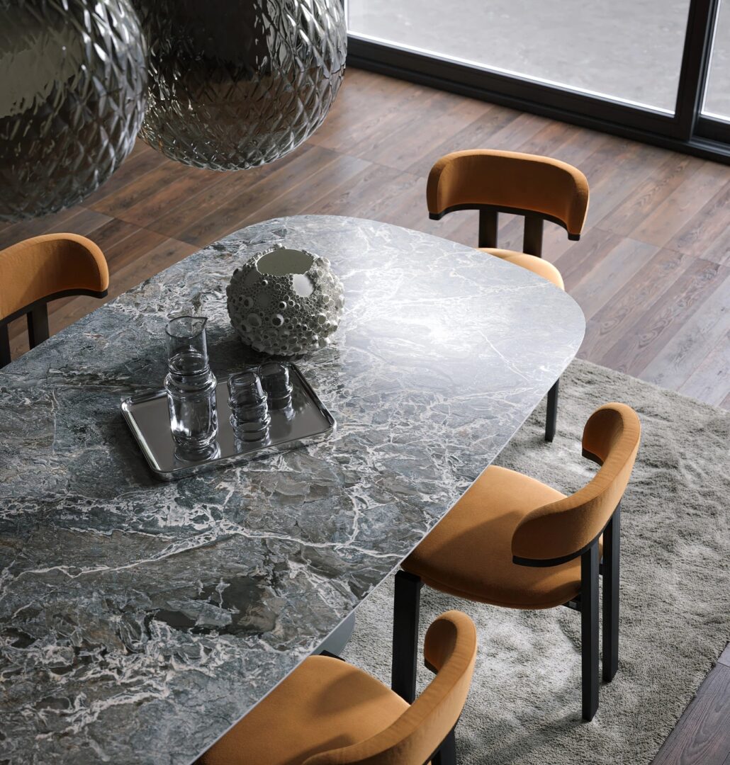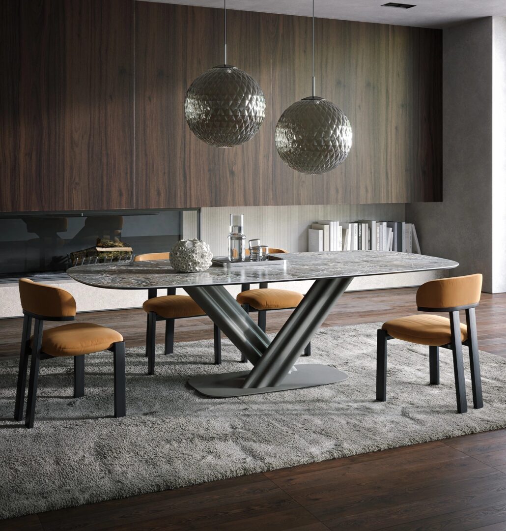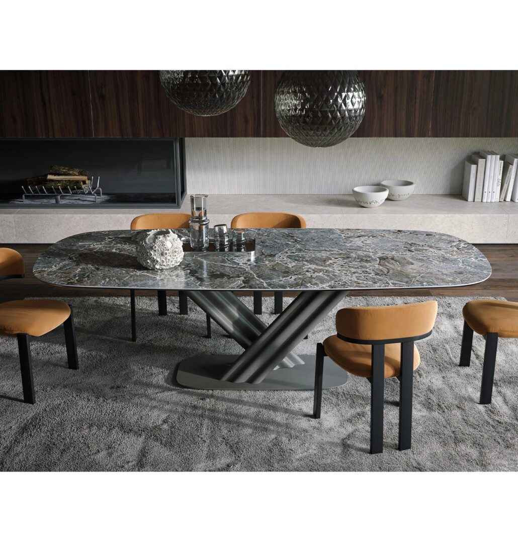 Занавес стол сочетает в себе стабильность и изысканность с сценическим дизайном, вдохновленным сценой. Металлическая опора, скульптурная и динамичная, элегантно поддерживает керамическую столешницу или другую тонкую отделку. Идеально подходит для сложных условий, это икона стиля, которая превращает каждый момент в незабываемый опыт.