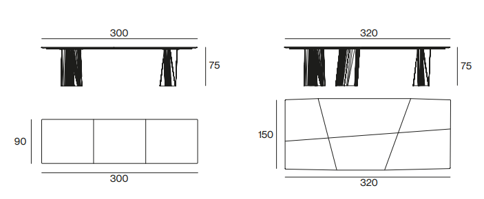 Sisma, стол большой универсальности, возник благодаря гармоничному визуальному взаимодействию между просторными вогнутыми и выпуклыми формами его искусно сформированных и выточенных вручную ножек.