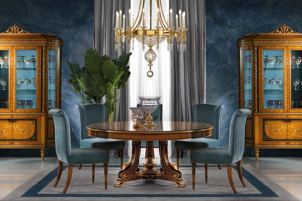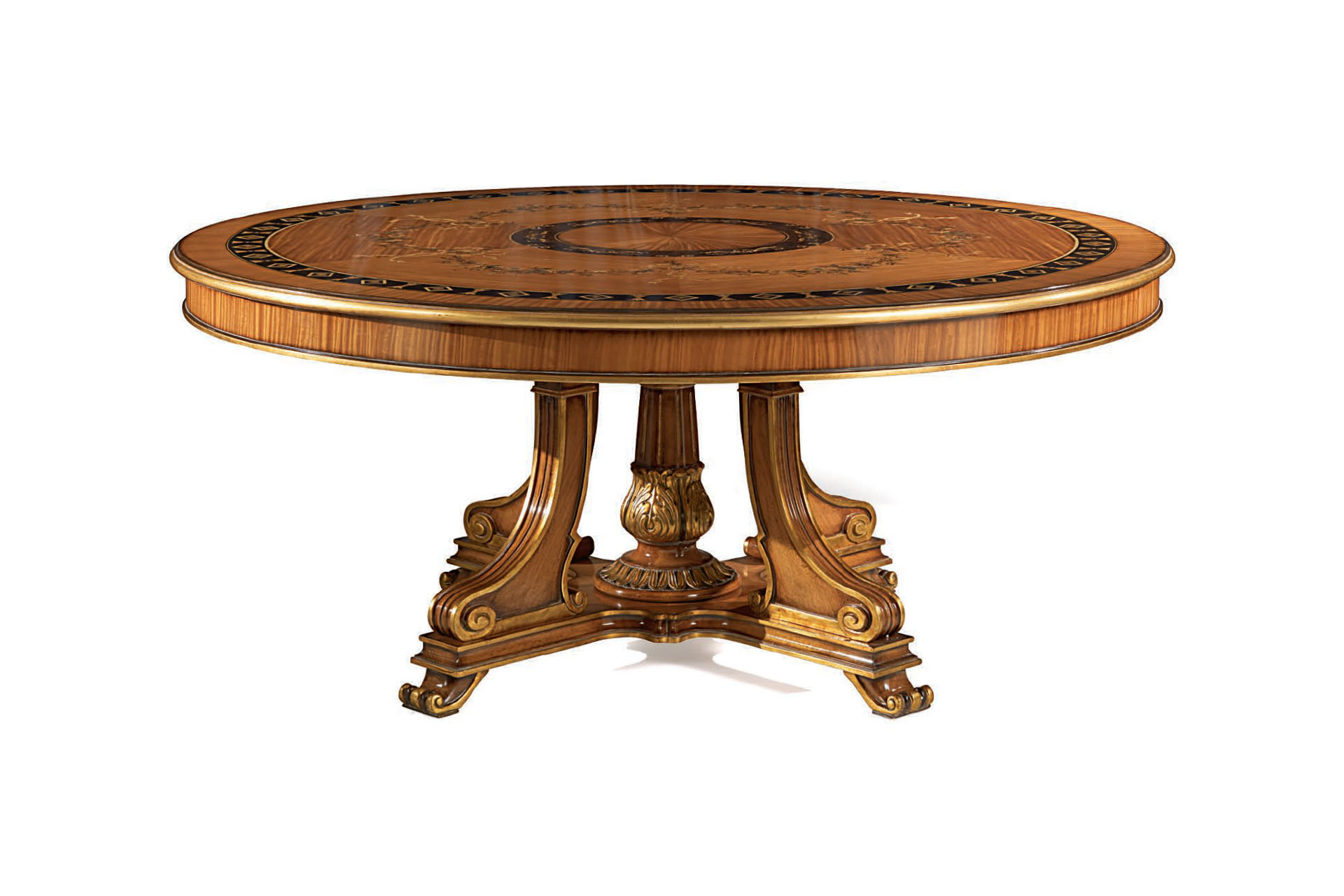 Элегантный обеденный стол в классическом стиле из цитронье и черного дерева, инкрустированный перламутровыми деталями. T / 5140-180 отделан изысканными материалами, основанными на древних ремесленных методах, передаваемых из поколения в поколение.