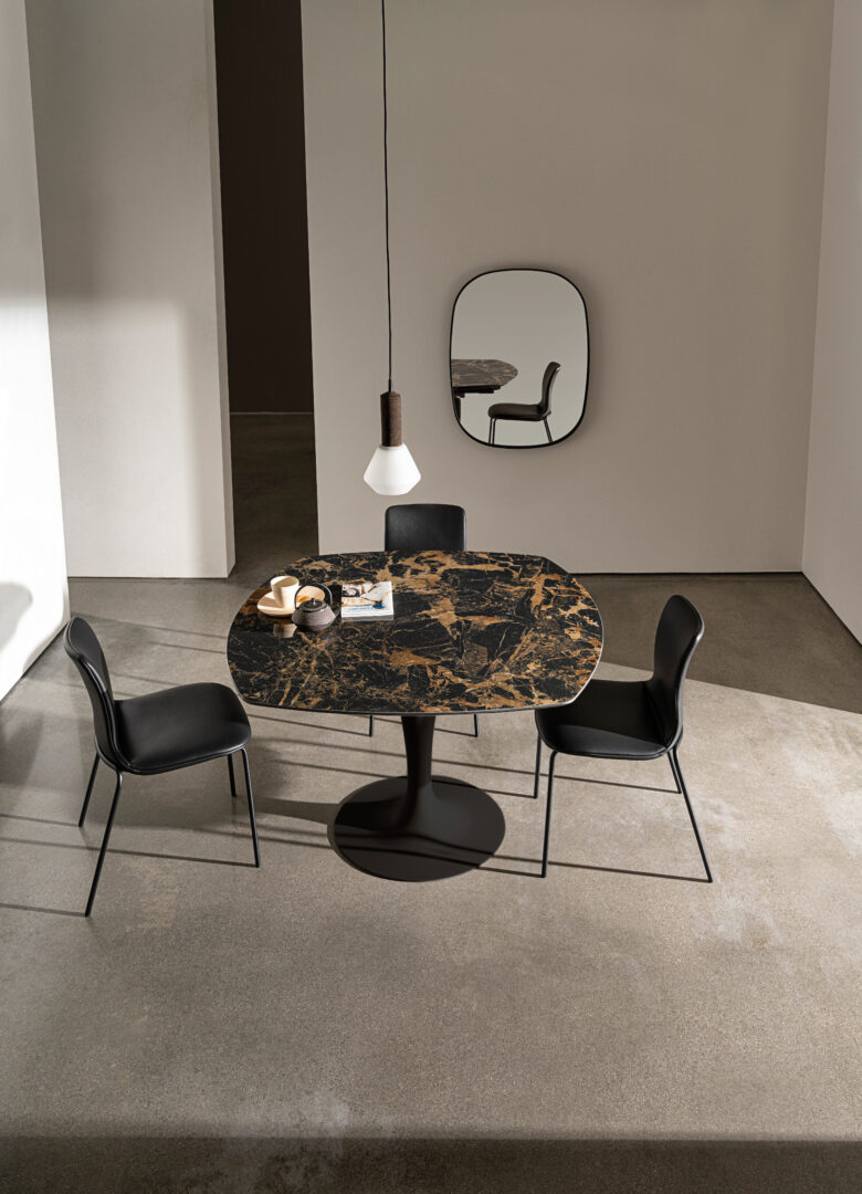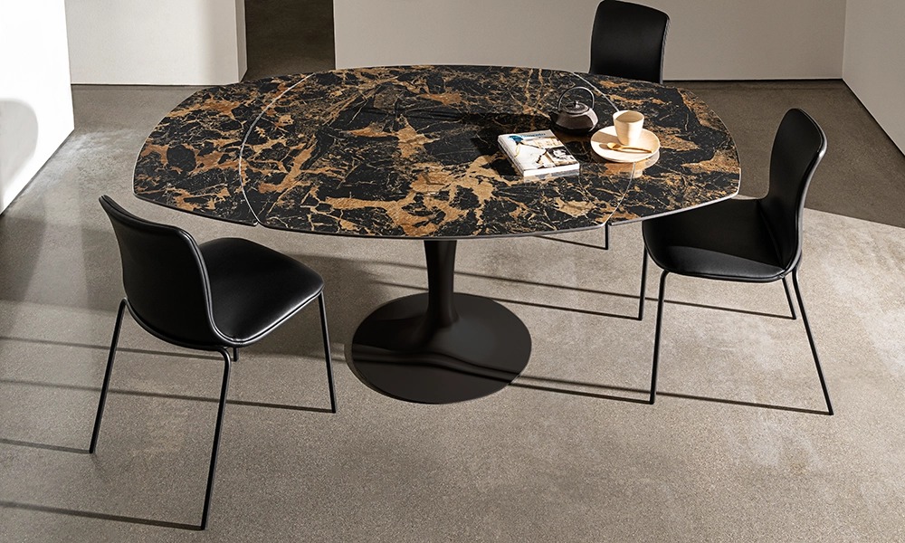 Новая интегрированная система растяжек добавляет функциональность к столу Flute, не изменяя его элегантности и формальной сущности. Ненавязчивый и интуитивно понятный механизм обеспечивает простое и плавное расширение, что делает стол идеальным для любой среды.