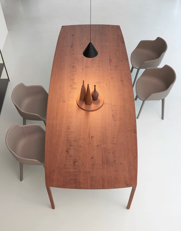 Дизайн Tense Curve был основан на стремлении дизайнеров Пьерджорджио и Микеле Каззаниги исследовать новые формальные возможности, в результате чего получилась округлая форма, которая усиливает праздничность среди гостей и позволяет свободно взаимодействовать без визуальных помех. Мягкий, извилистый силуэт стола способствует созданию теплой и гармоничной атмосферы.