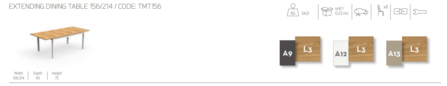 Раздвижной обеденный стол 156/214 от Timber сочетает в себе дизайн форм и теплоту используемых материалов. Столешница из тикового дерева придает изделию знакомый оттенок, что делает его идеальным для создания обеденной зоны на открытом воздухе. Алюминиевая конструкция поддерживает выдвижную столешницу, создавая более уютную обстановку.