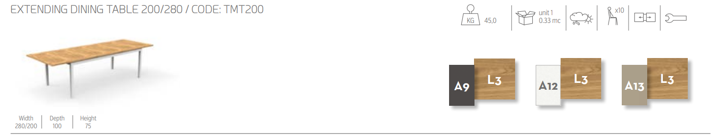 Итальянский стол Timber 200/280 Extendible dining Table от Talenti