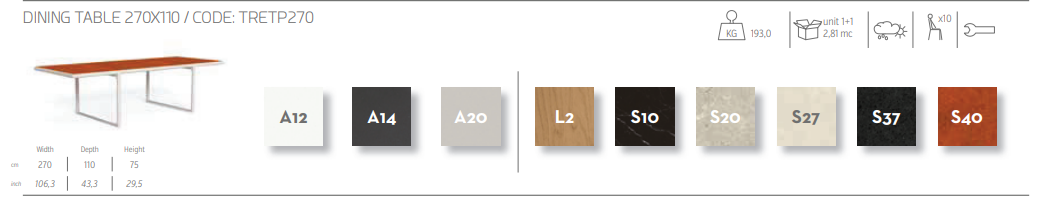 Итальянский стол Tressé Dining table 270X110 от Talenti