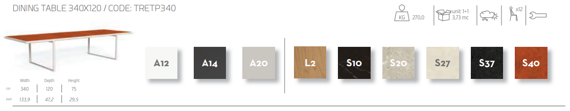 Итальянский стол Tressé Dining table 340X120 от Talenti