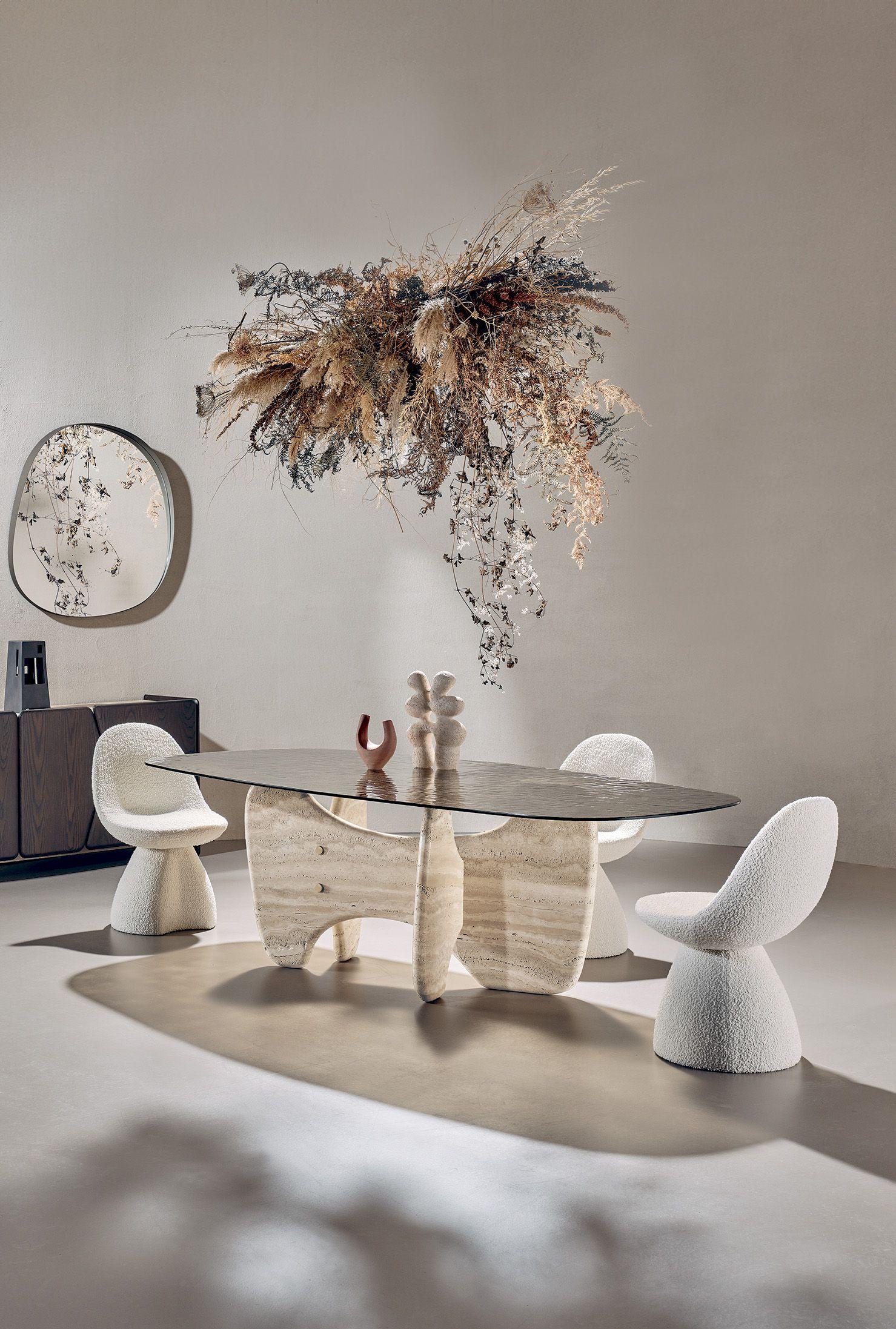 Вдохновленный древними культурами и племенным искусством, стол Tribe Stone сочетает в себе динамичные формы и современную эстетику. Его плавные линии, напоминающие изгибы природных ландшафтов, контрастируют с монументальной мраморной основой, создавая эффект легкости и прочности одновременно. Такой дизайн не просто украшает пространство — он рассказывает историю, превращая ваш дом в галерею уникальных предметов.