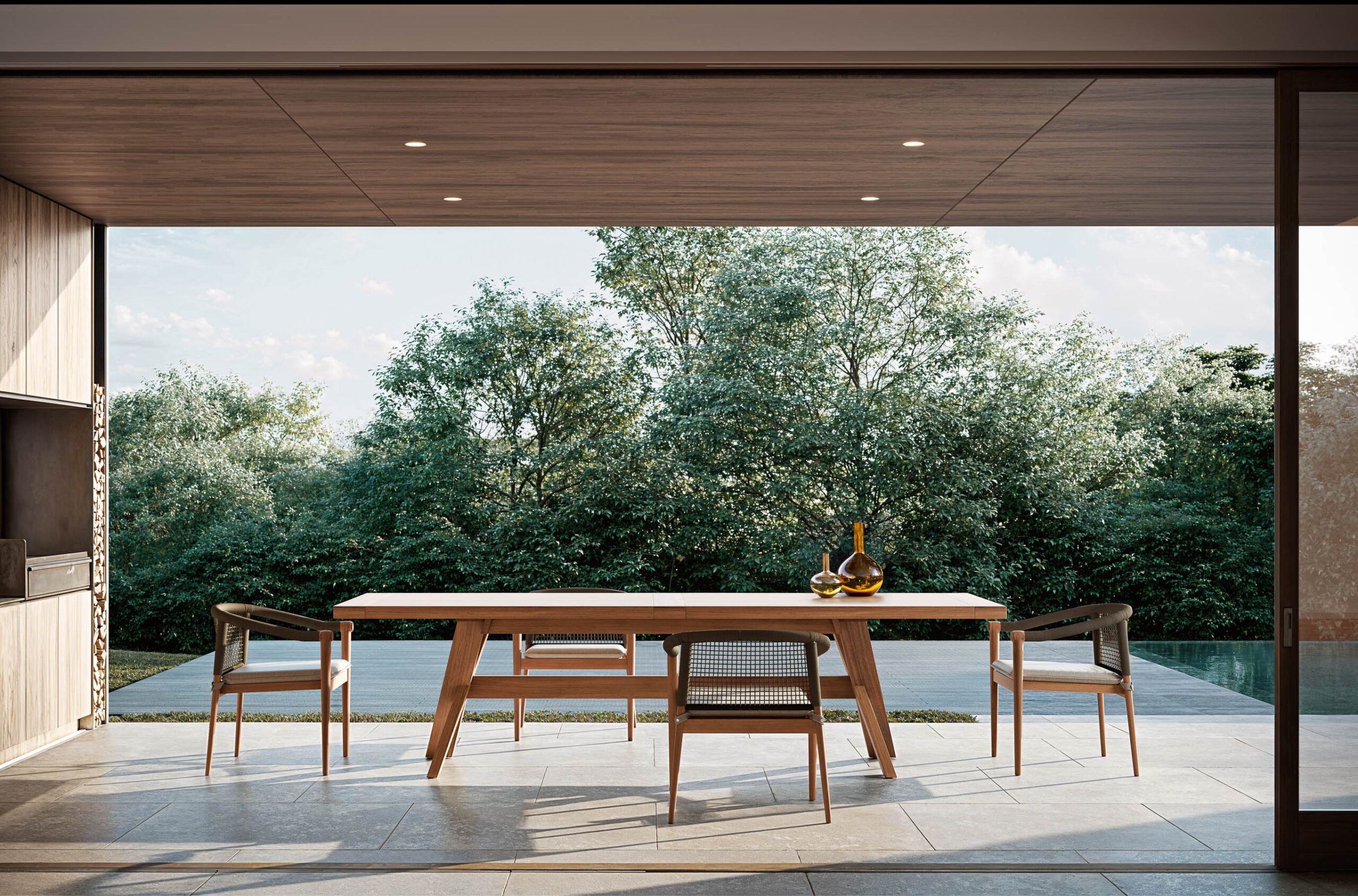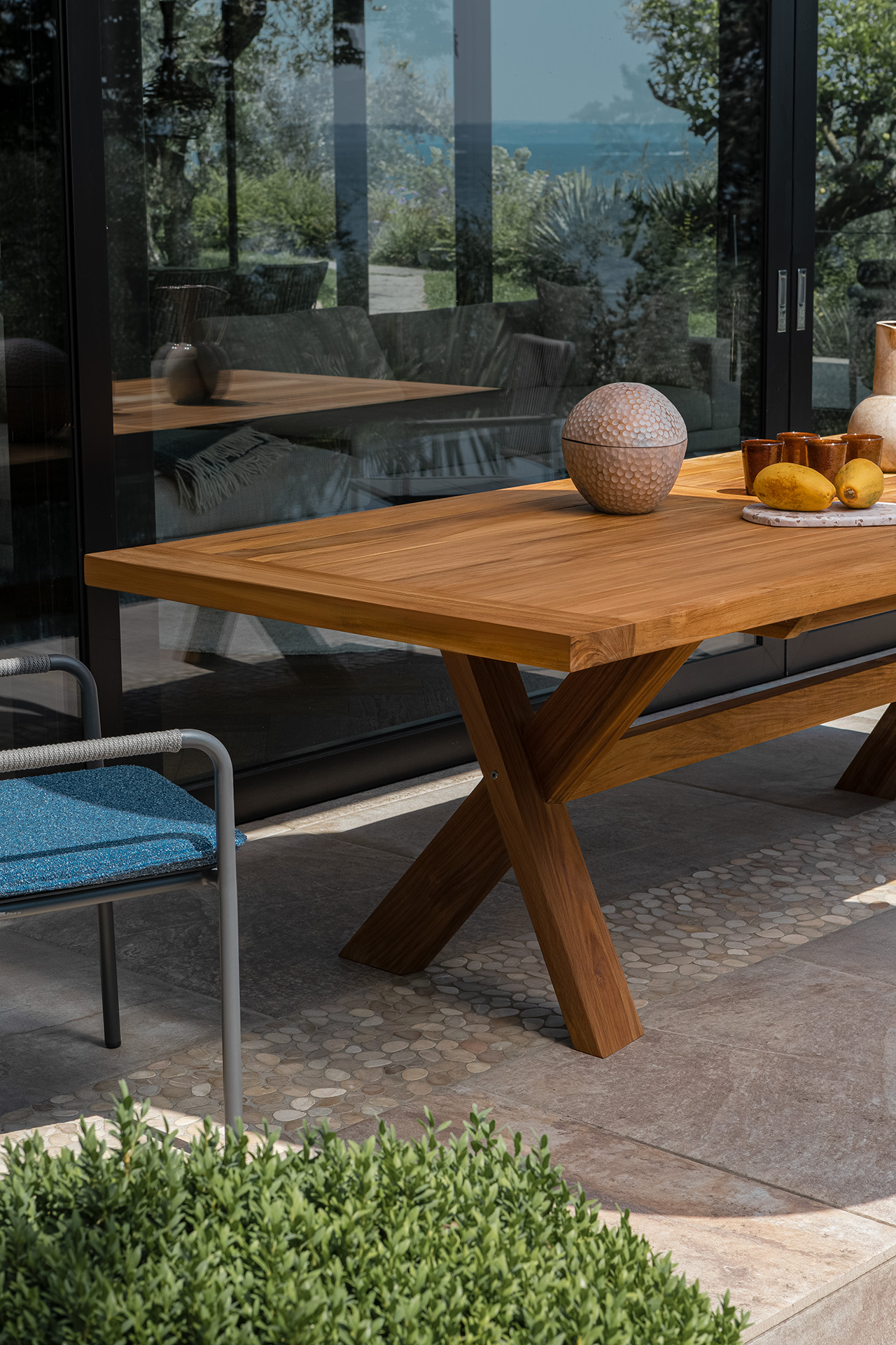 Сочетание мощных форм и потрясающей индивидуальности объединяет функциональность и эстетику в современном дизайне с прочной структурой из тикового дерева и приятной на ощупь поверхностью.