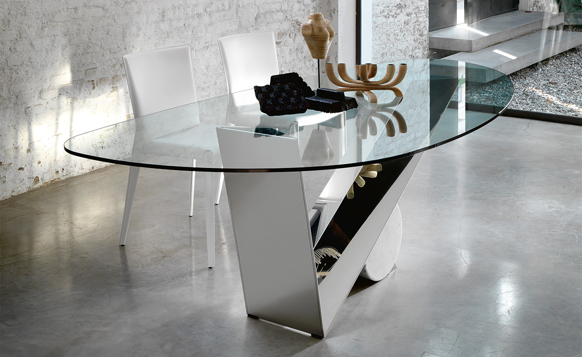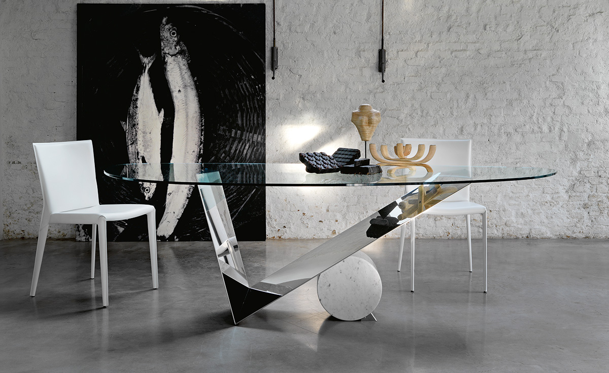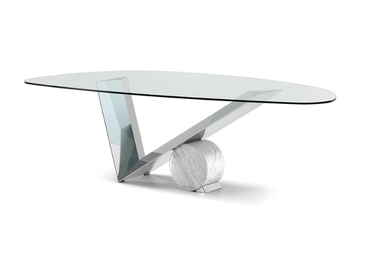 VALENTINOX – это скульптурное основание, где объемы визуально балансируют друг с другом, создавая эффект легкости и динамики. V-образная конструкция из полированной нержавеющей стали или ценных пород дерева, установленная на мраморном цилиндре, подчеркивает эксклюзивность авторского замысла. Стеклянная столешница добавляет современности, отражая свет и визуально расширяя пространство. Такой стол станет центральным элементом обеденной зоны, притягивая восхищенные взгляды гостей.