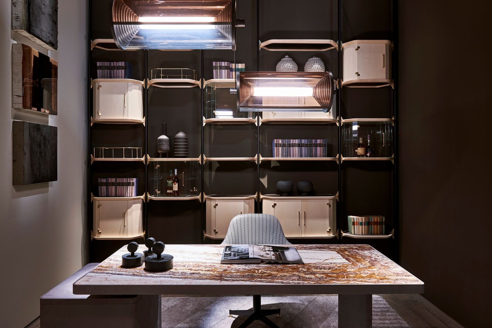 Мраморный письменный стол Verba Volant Slim Stone воспевает неподвластную времени элегантность камня через изысканный дизайн от Роберто Лаццерони. Минималистичный, но богатый изящными деталями письменный стол, сочетающий в себе эксклюзивные материалы, такие как мрамор, кожа и металл, достойно украсит любой интерьер. Столешница из натурального камня, заключенная в обтянутую кожей раму из массива тюльпанного дерева, отражает гармоничный диалог между фактурностью и мягкостью, а тумба и круглая ножка (доступная в исполнении из металла с матовым восковым покрытием или с кожаной обивкой) привносят в функциональную природу письменного стола скульптурное напряжение. Присущая камню и мрамору красота, хроматические вариации и уникальные несовершенства делают каждое изделие эксклюзивным и неповторимым.