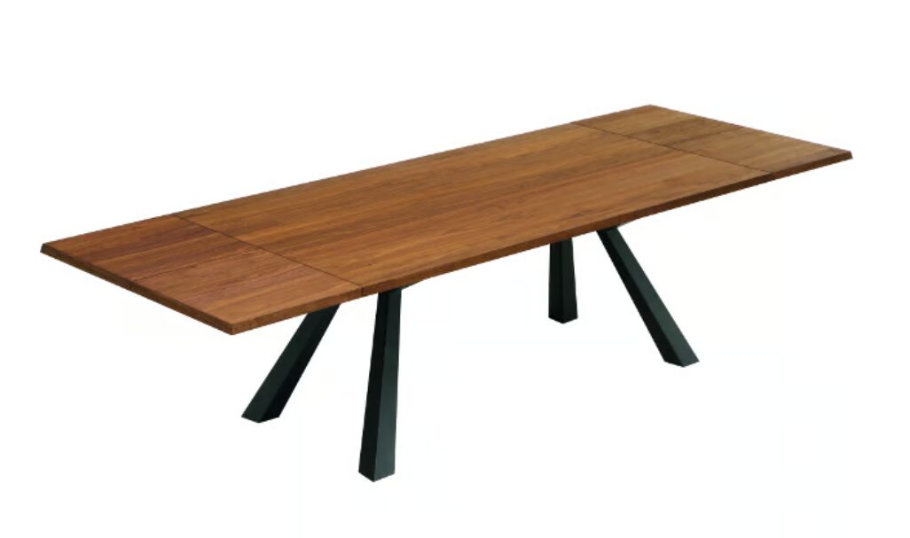 Выдвижной стол Zeus с металлической конструкцией. Столешница и удлинители выполнены из шпонированного дерева.