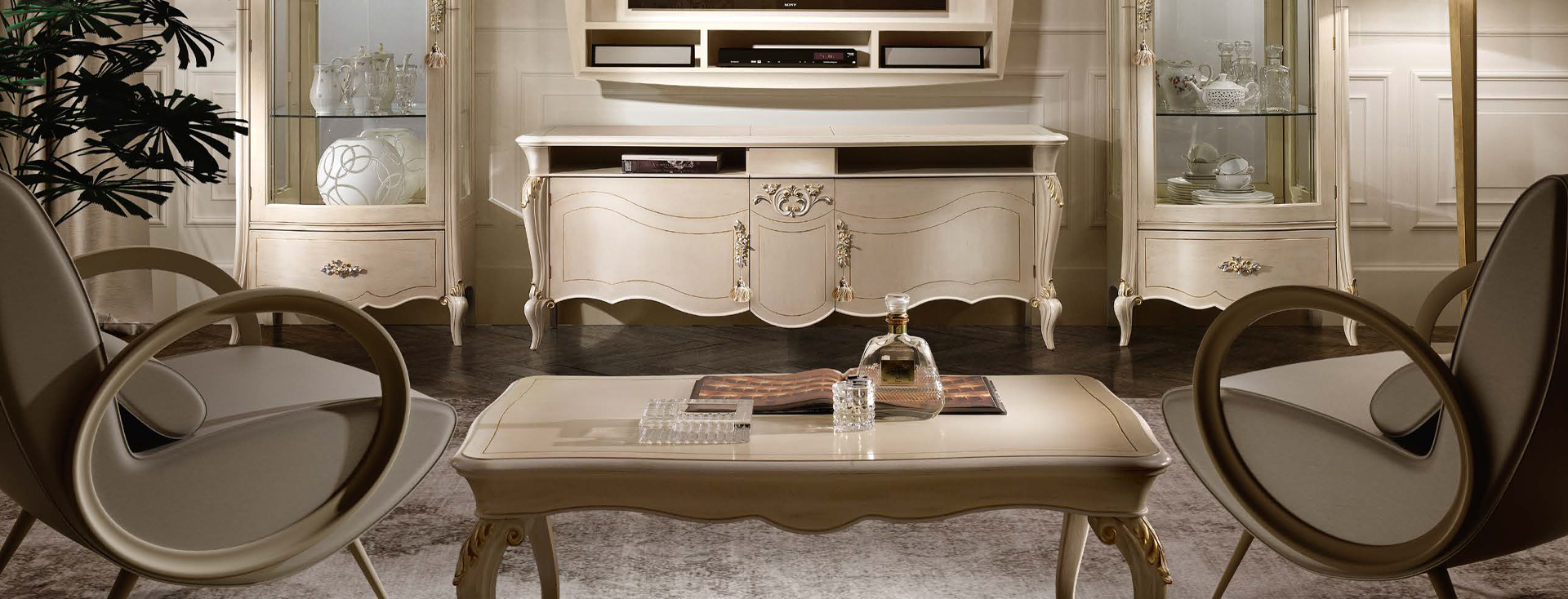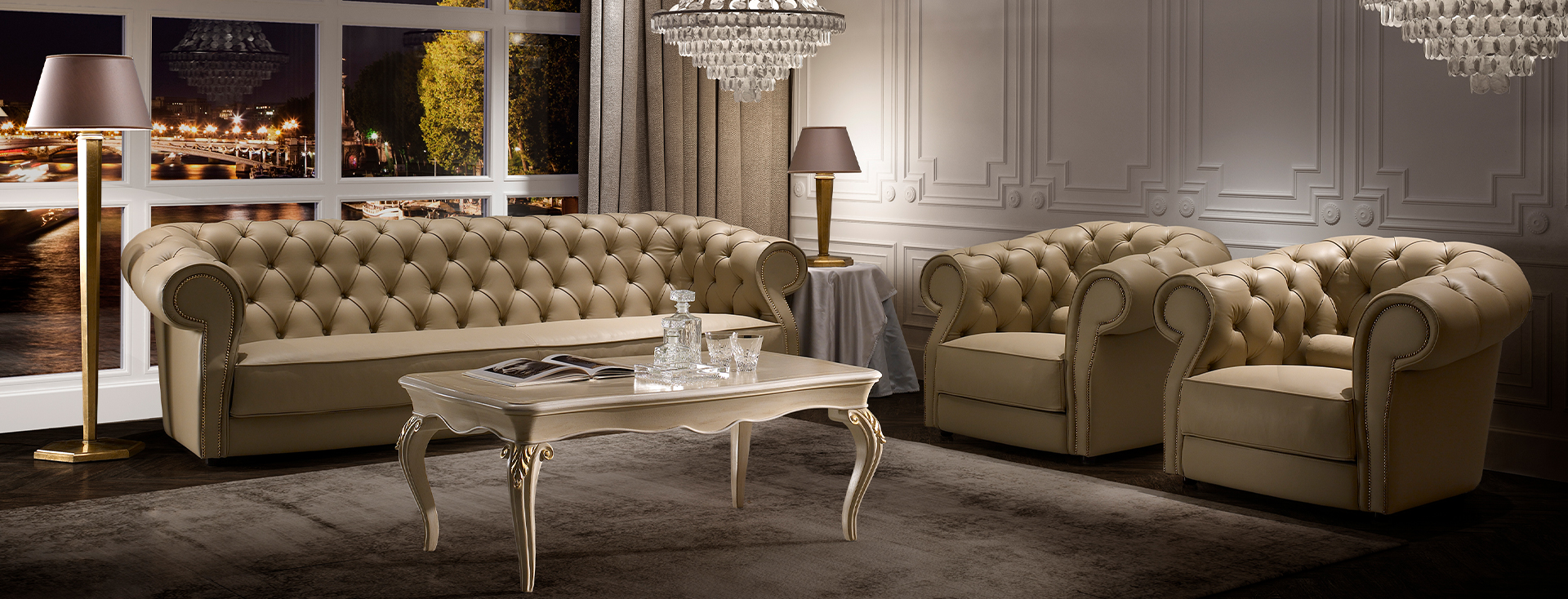 Чашечка хорошего чая, спокойное чтение или вечерний бокал виски — и все это в гостиной, оформленной в классическом стиле, но чувствительной к городскому гламуру. Журнальный столик Certosa позволяет вписаться в любой контекст, подчеркивая ценность ценных пород дерева, обработанных лучшими тосканскими мастерами.