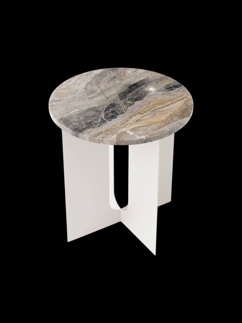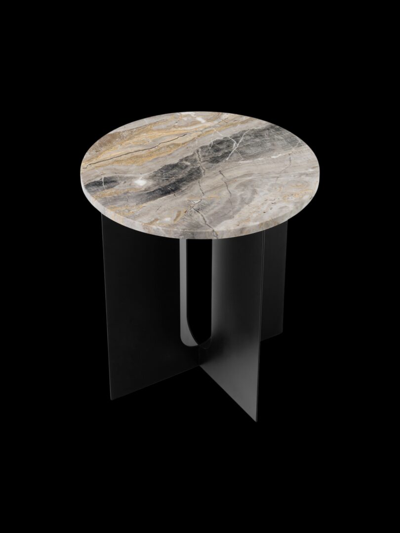 Стол с идеальными пропорциями имеет прочное стальное основание с порошковым покрытием, на котором сбалансирована округлая мраморная столешница. Изысканная мраморная столешница стола, которая едва нависает над ножками, создавая общее ощущение равновесия, и контрастные широкие плоские ножки, вырезанные лазером для большей точности, делают его подходящим для самых разных стилей декора.