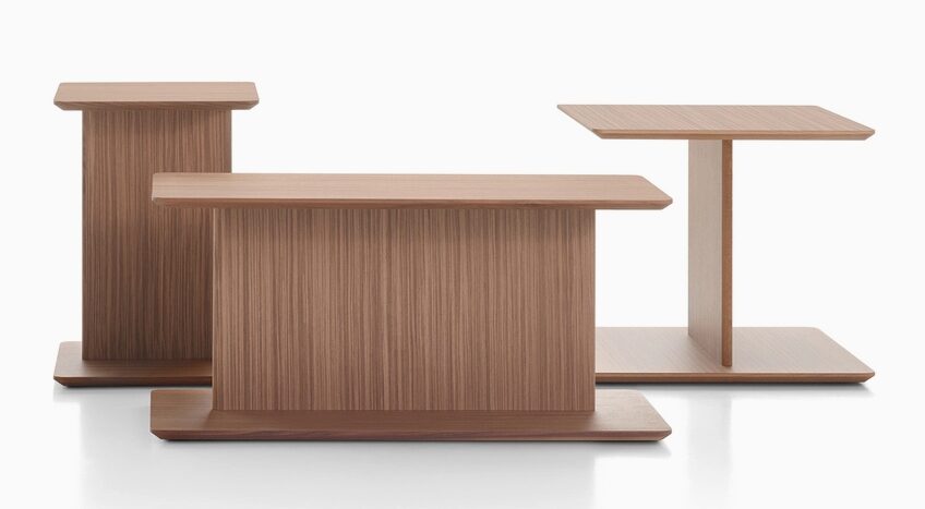 Массивные журнальные столики расширяют композиционные возможности системы, добавляя практичности и дополнительных опций поверхности. Коллекция, выпускаемая из ореха Каналетто, беленого дуба и натурального дуба, включает в себя три отдельно стоящих варианта, которые можно использовать по отдельности или комбинировать для создания различных конфигураций, а также дополнительный столик, который легко помещается между модулями дивана и может быть легко перемещен по мере необходимости. Благодаря своему оригинальному дизайну эти столы являются универсальным дополнением, идеально подходящим не только для системы Array, но и для сочетания с другими коллекциями.
