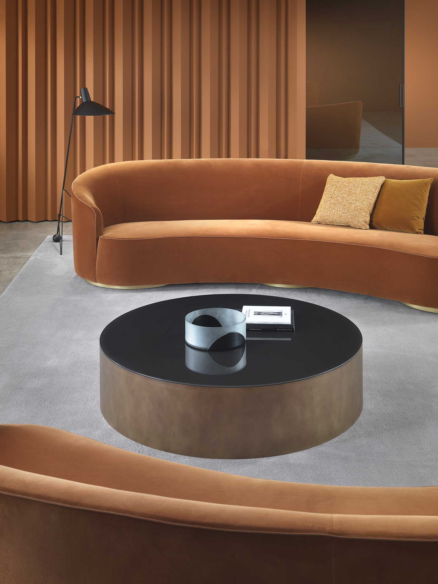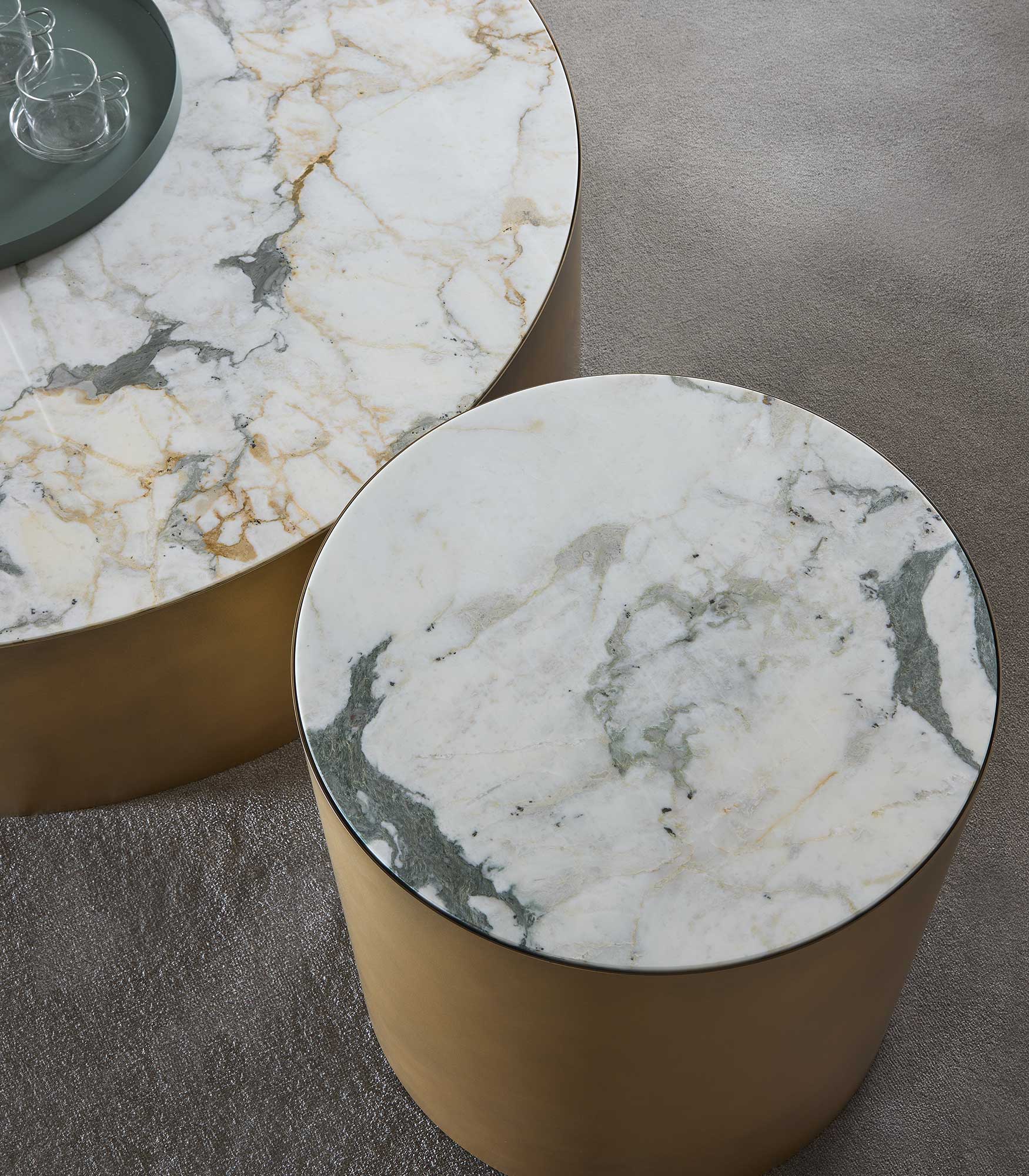 Коллекция Arthur — это симфония современных линий и классической утонченности. Основание в виде металлического цилиндра придает столику легкость и динамику, а столешница из натурального мрамора или закаленного стекла добавляет ему монументальности. Такое сочетание создает визуальный контраст, подчеркивающий глубину замысла дизайнеров Giulio Marelli.