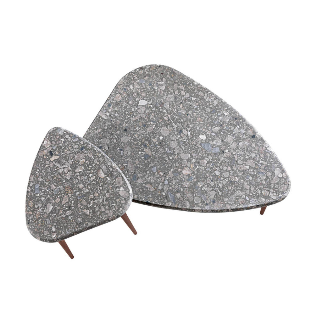 Оригинальный набор журнальных столиков Moderna design с основанием из твердой золы, окрашенной в дымчатый цвет, и мраморной столешницей. Их дизайн с простыми и линейными формами и изысканностью материалов делают этот набор идеальным для декора с решительным и уникальным стилем.