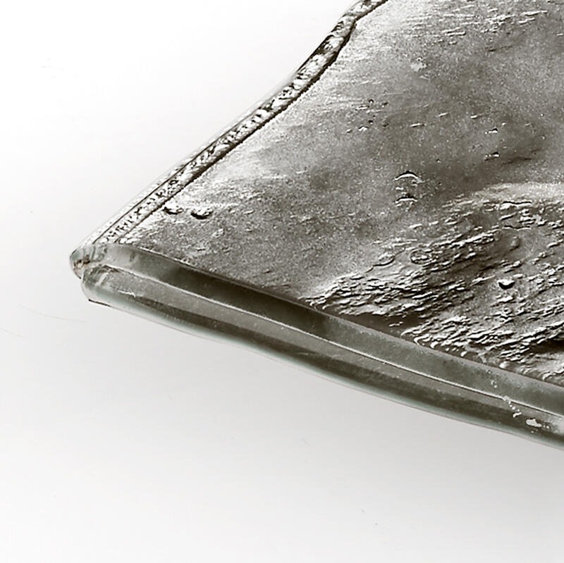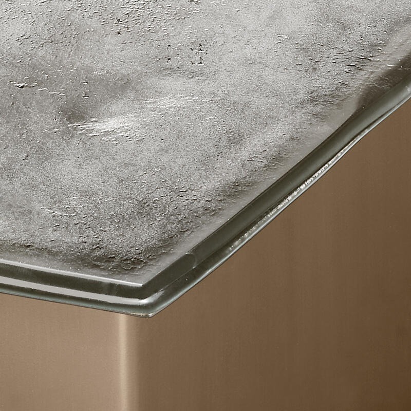 Столешница из обожженного стекла в два слоя с неровными краями, посеребренная с отделкой под старину.