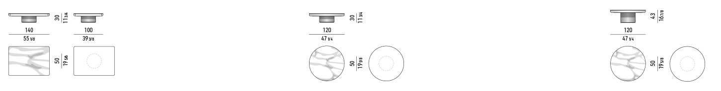 Особенность дизайна — матовая лакированная опора, скрывающая толщину столешницы и придающая изделию визуальную легкость. В некоторых исполнениях столик выглядит как монолит благодаря гармоничному сочетанию цвета основания и мраморной поверхности.