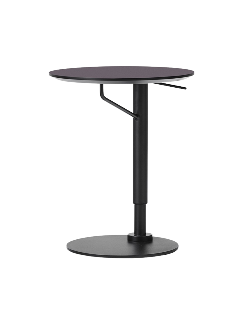 Независимо от того, используется ли он в качестве отдельного стола или временного рабочего места, боковой столик с регулируемой высотой адаптируется к меняющимся потребностям, предлагая универсальное и безупречное решение для динамичных жилых помещений. Его компактная и гибкая конструкция позволяет удобно придвигать его к дивану или креслу, оптимизируя пространство, а его основание из черной стали и столешница из линолеума цвета древесного угля или дуба, окрашенного в темный цвет, придают ему изысканность и качество, гарантирующее, что он выдержит требования ежедневного использования.