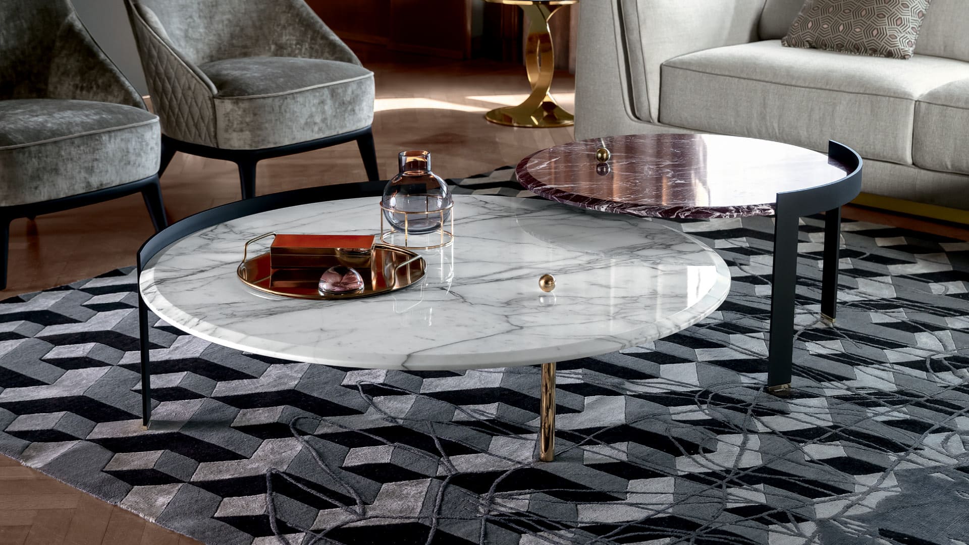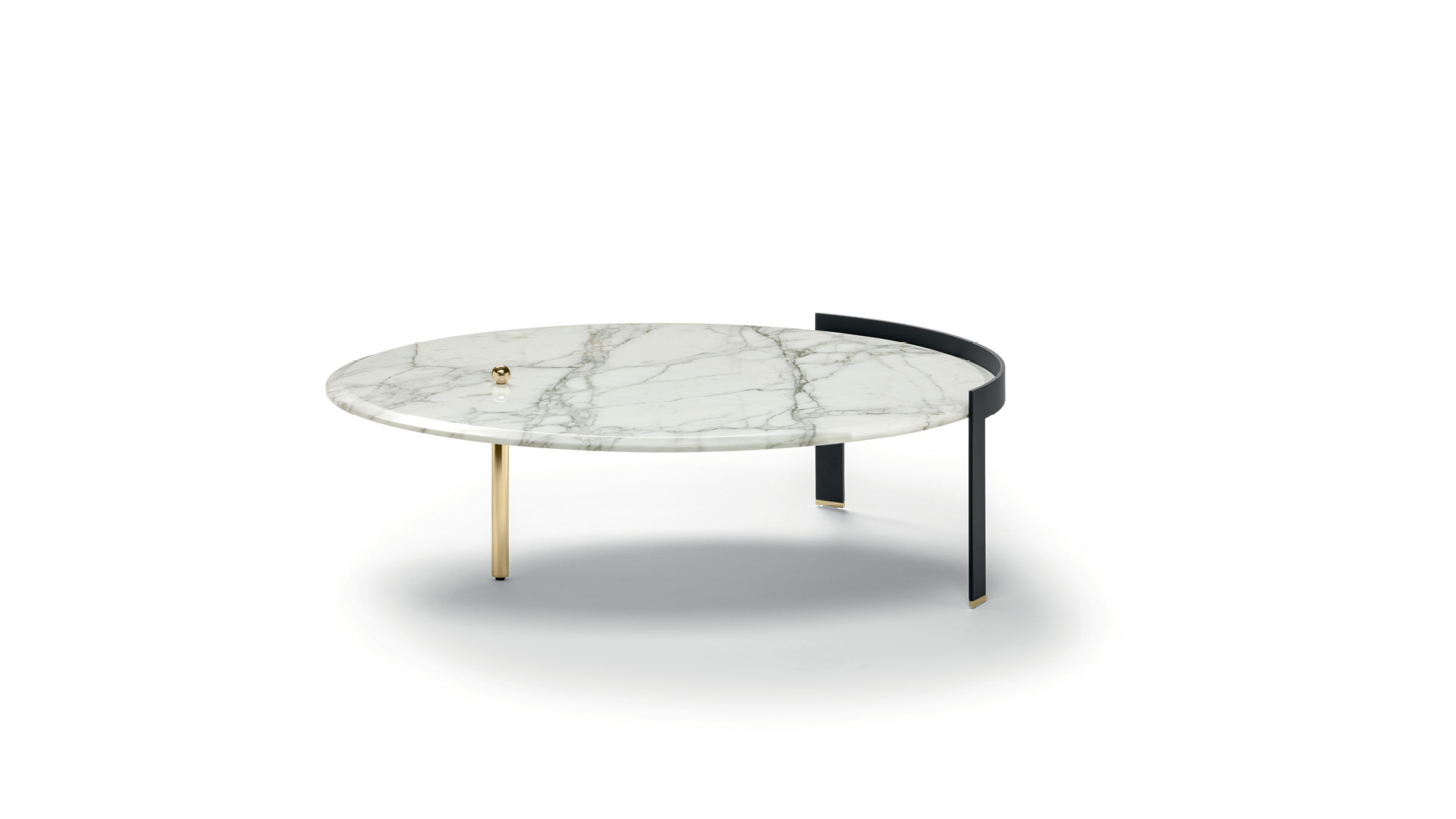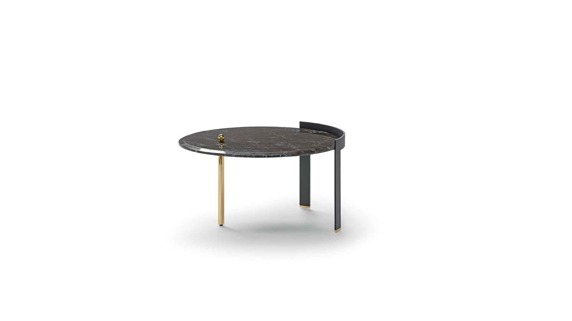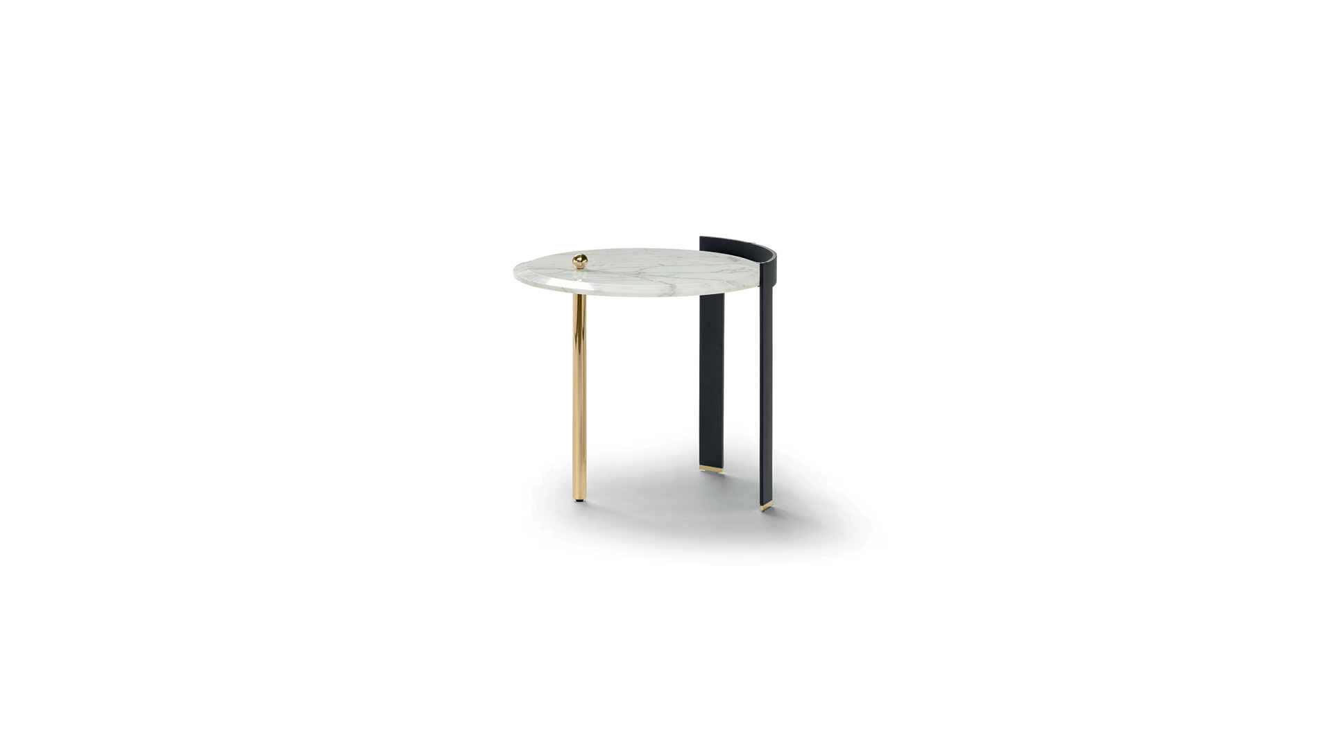 Маленький столик Brian на трех металлических ножках представляет собой изысканную линейку дополнений, обладающих ярко выраженной индивидуальностью. Металлический каркас сочетается с изящной мраморной столешницей со скошенными краями. Поразительной деталью является центральная ножка, которая пересекает границу, очерченную мрамором, и становится декоративным элементом столешницы.