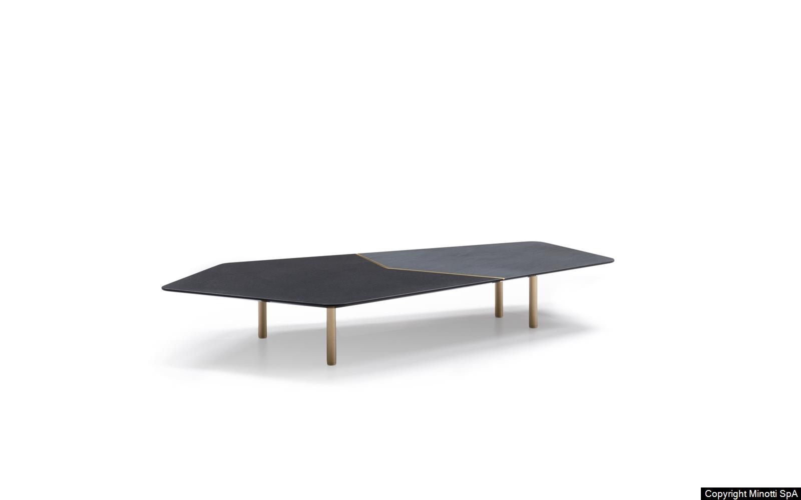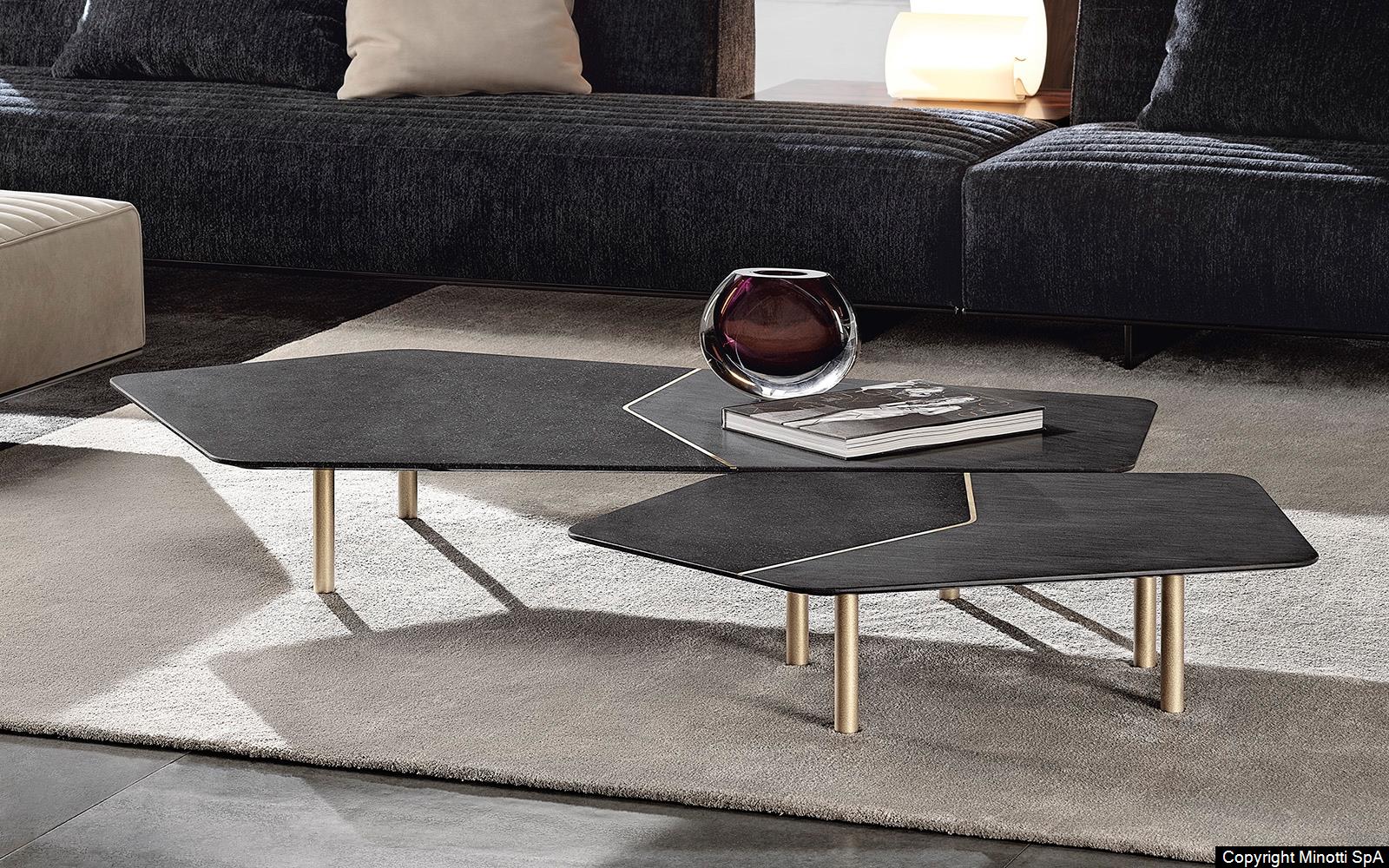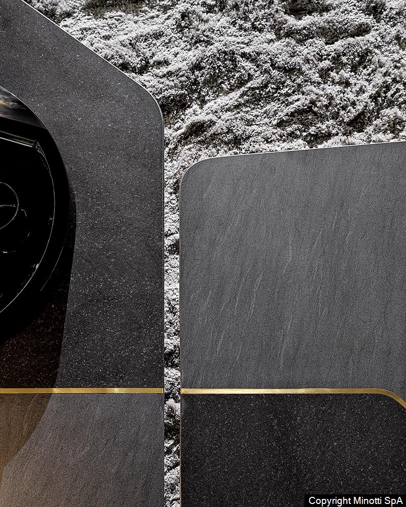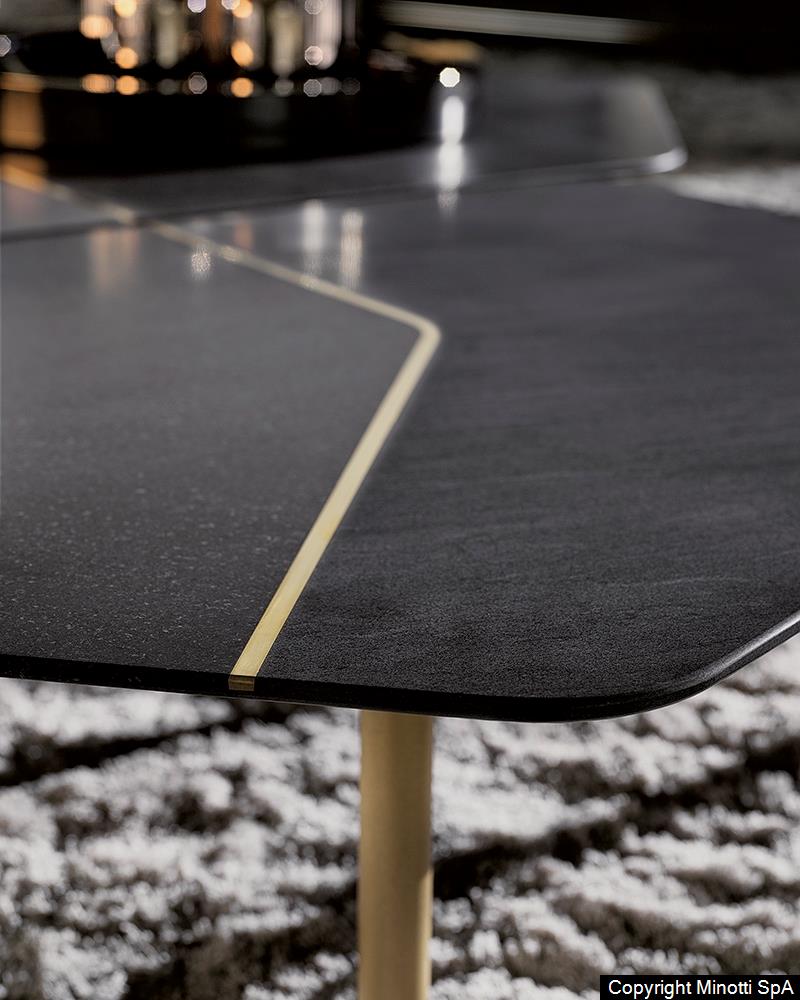 Фабрика MINOTTI использует передовые методы обработки камня и металла, сохраняя авторский замысел дизайнеров. Соединение материалов выполняется вручную, что гарантирует безупречную точность и долговечность. Даже матовая латунь проходит многоэтапную обработку для сохранения благородного блеска.