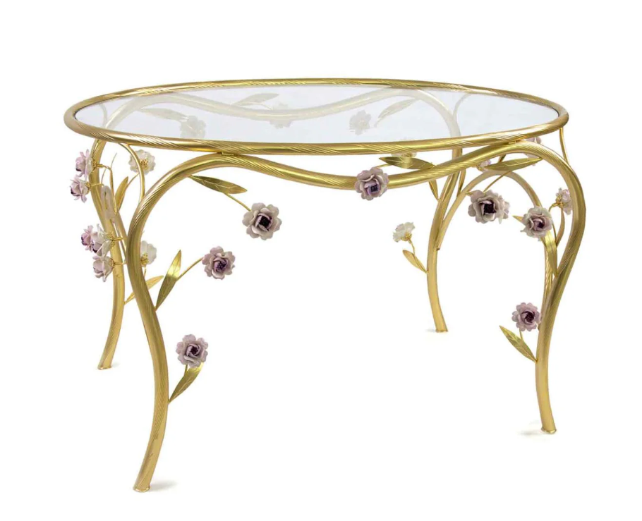 Этот журнальный столик Camelia придаст весеннее очарование вашей гостиной. Этот столик, украшенный камелиями, изготовлен искусными итальянскими мастерами из латуни с позолотой 24 карата. Каждый цветок выполнен вручную и раскрашен в пастельно-розовый цвет. Он незаменим, когда у вас гости, он идеально подходит для того, чтобы просто поставить на него ваш любимый горячий напиток, и станет изысканным украшением вашего дома.