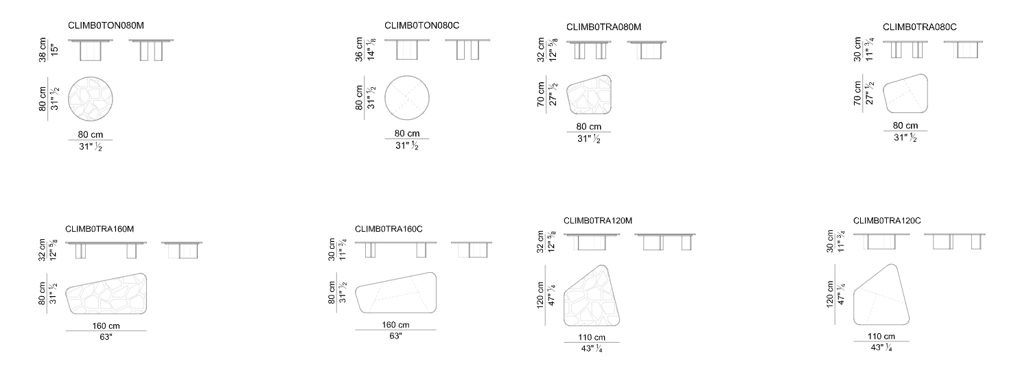 Коллекция журнальных столиков CLIMB — это эксклюзивный предмет мебели, способный внести изюминку и оригинальность в любую обстановку, как домашнюю, так и профессиональную. Смелая геометрия изделия, круглая или трапециевидная, волнистые основания, выполненные из гиперболических лезвий из изогнутого дерева, столешницы из драгоценных материалов, мрамора или кожи седла, тонко закругленные вершины и края, а также разная высота, позволяющая частично перекрывать друг друга, создают неповторимый ансамбль мебели, обладающий особым шармом и эффектностью.