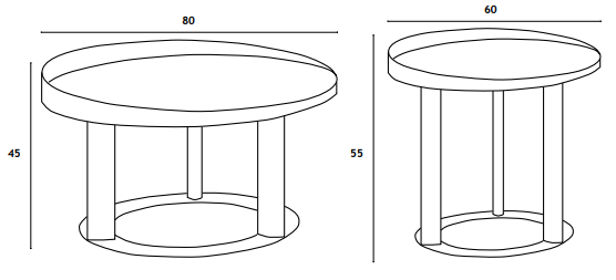 Столик имеет размеры 80 × 45 см и 60 × 55 см.