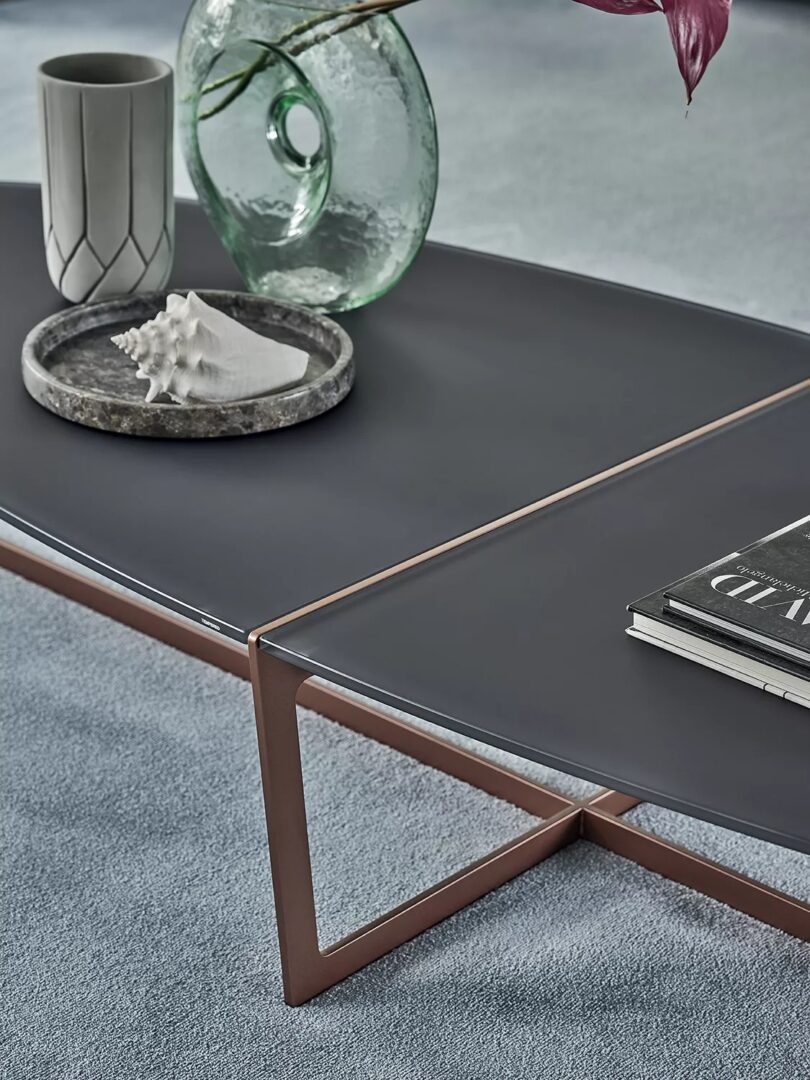 Журнальный столик со структурой из лакированной стали и столешницей из стекла и стекла,устойчивого к царапинам, СуперКерамики и СуперМрамора.