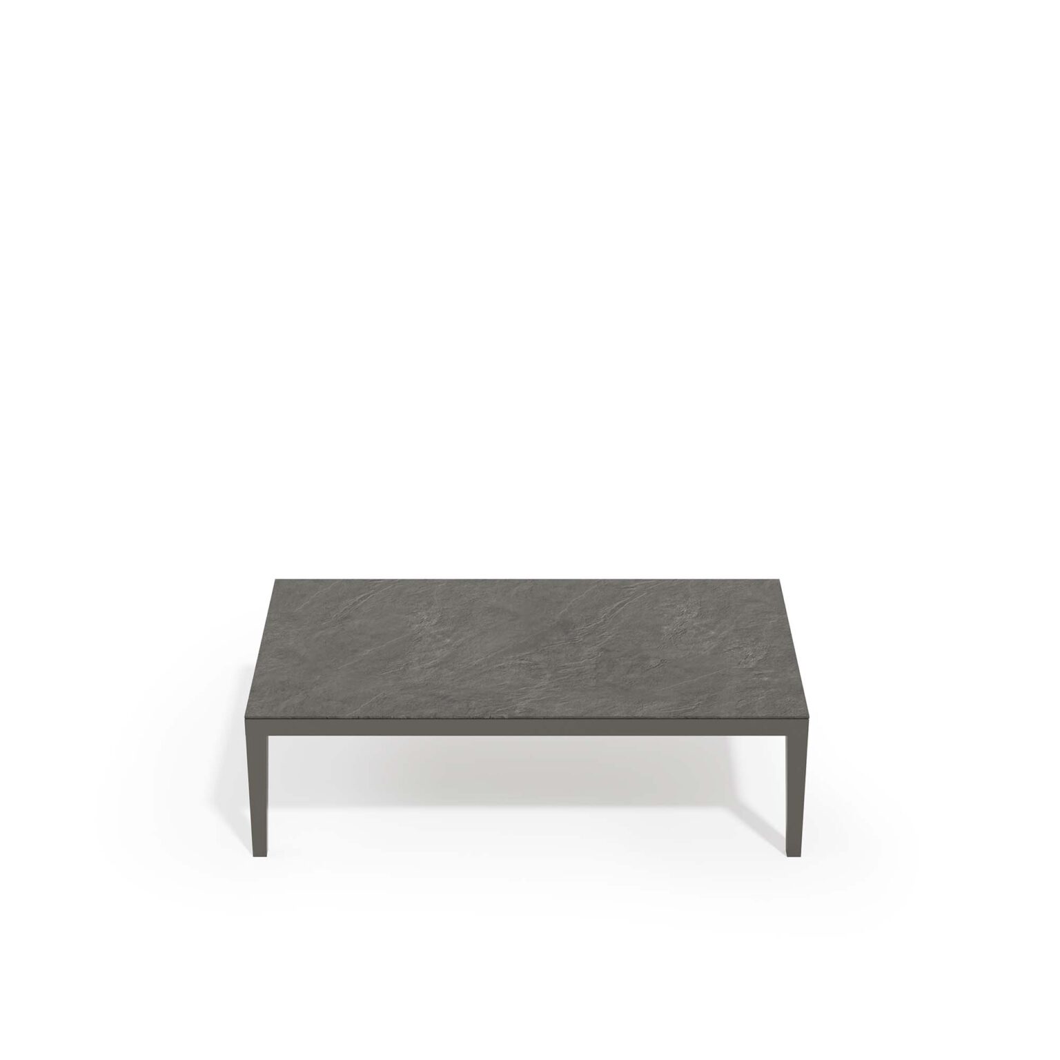 Стол из алюминия, окрашенного эпоксидной смолой, для использования на открытом воздухе. Закаленное стекло с эффектом окрашенного камня.