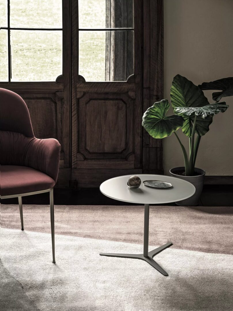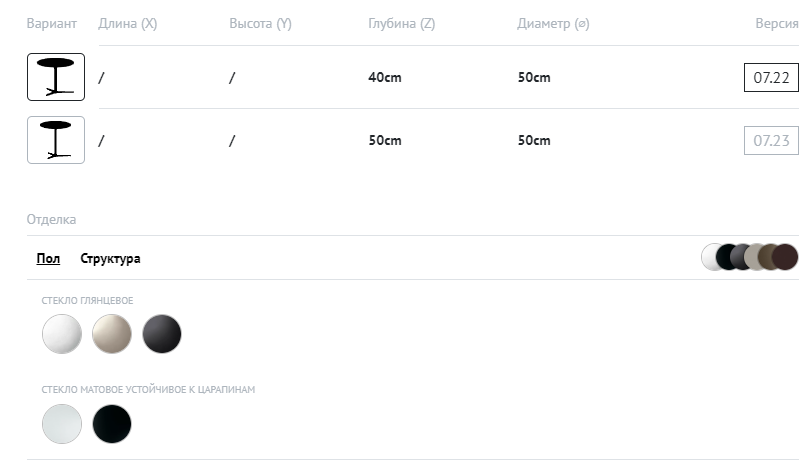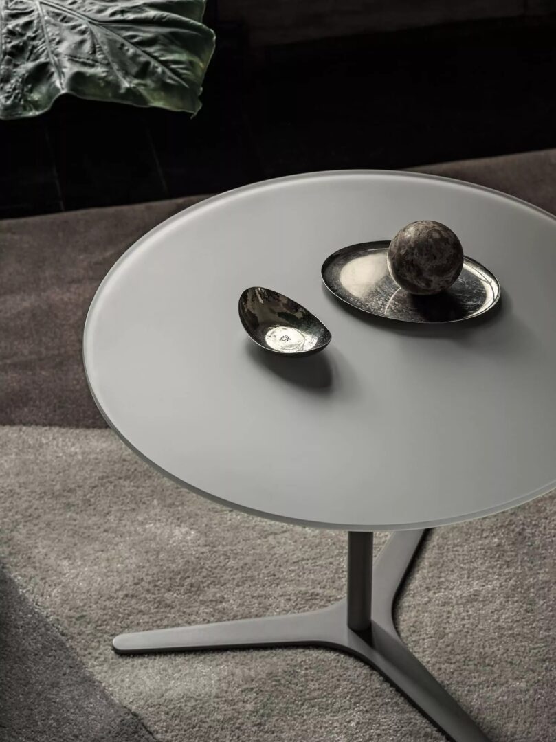 Столик со структурой из лакированной стали, столешница из стекла или стекла, устойчивого к царапинам.