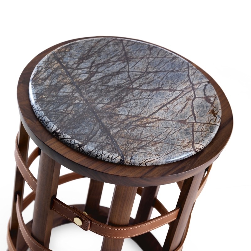 Круглый журнальный столик для курения с каркасом из массива дерева, столешницей из мрамора или дерева.
