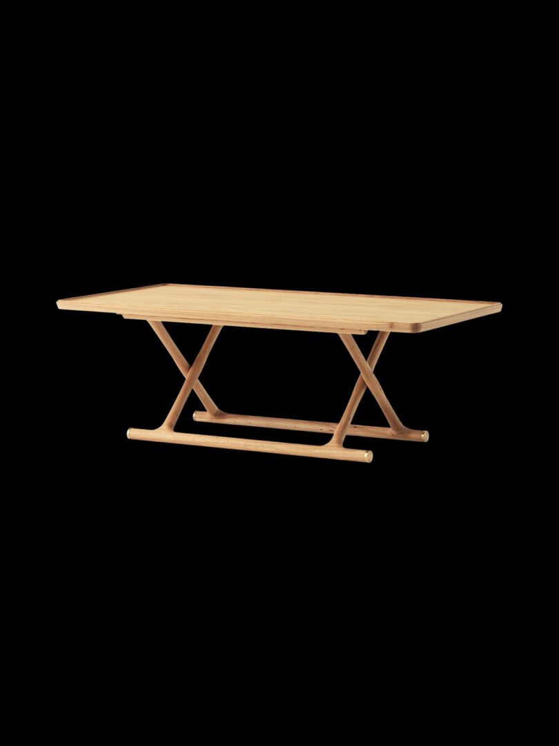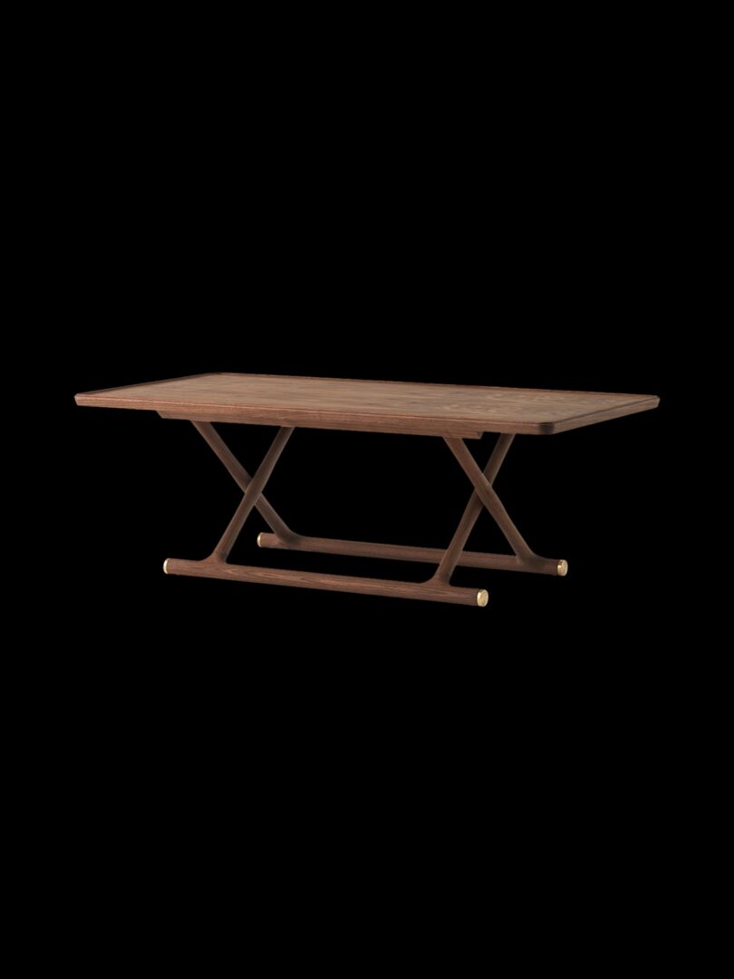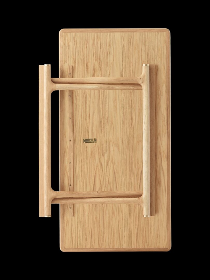 Складной столик Jäger Lounge от Mogens Lassen, выполненный в архивном стиле 1941 года. Культовая фурнитура датского дизайна выполнена из дерева – промасленного дуба, черного мореного дуба или промасленного ореха. На столе также имеется латунная табличка с выгравированным на ней уникальным серийным номером.