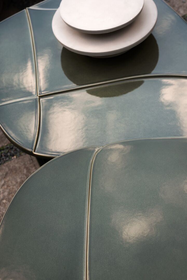 Keramikè — коллекция керамических столиков для внешних пространств, которая вдохновлена природными ландшафтами, преображенными руками человека. Образ рыхлой необработанной земли находит отражение в фактуре столешницы мягкой, естественной формы. Столики представлены в трех размерах. Глянцевая поверхность из глазурованной керамики, прошедшей специальную обработку для использования на открытом воздухе, переливается зелеными и синими оттенками морской воды и пурпуром закатного неба, создавая эффект зеркального сфумато и сливаясь с садом в игре бликов и отражений.