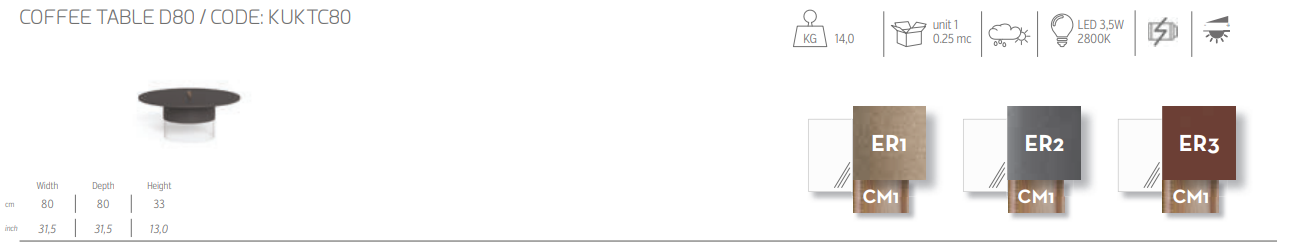 Журнальный столик D80 из коллекции Kukà — это идеальный стол для оформления вашего открытого пространства. Инновационный, устойчивый к атмосферным воздействиям, он изготовлен из экологически чистых материалов. Метакрилатное основание рассеивает свет лампы, встроенной в стол, и поддерживает круглую столешницу из смолы.