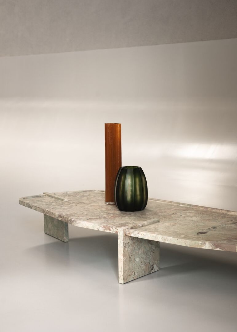 Каменные столики коллекции Lana подчеркивают естественную красоту мрамора и камня, являя собой идеальный образец гармонии и баланса, созданный Кристофом Делькуром. Представленные в разных вариантах высоты и размера, столики отличаются изящными воздушными линиями, которые, контрастируя с массивностью материалов, уравновешивают объем. Подобные аэродинамическим скульптурам столешницы и основания неправильной формы элегантно обыграны уникальными оттенками каждого камня, что делает любой из предметов эксклюзивным и неповторимым произведением искусства.