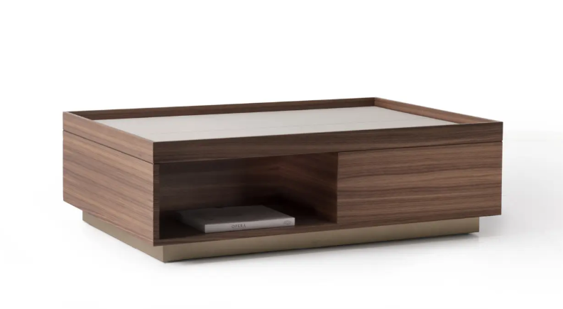 Журнальный столик с открытой секцией Lance оснащен столешницей из кожи или мрамора. Конструкция с открытыми секциями, расположенными слева на каждой длинной стороне, создает изысканный контраст.